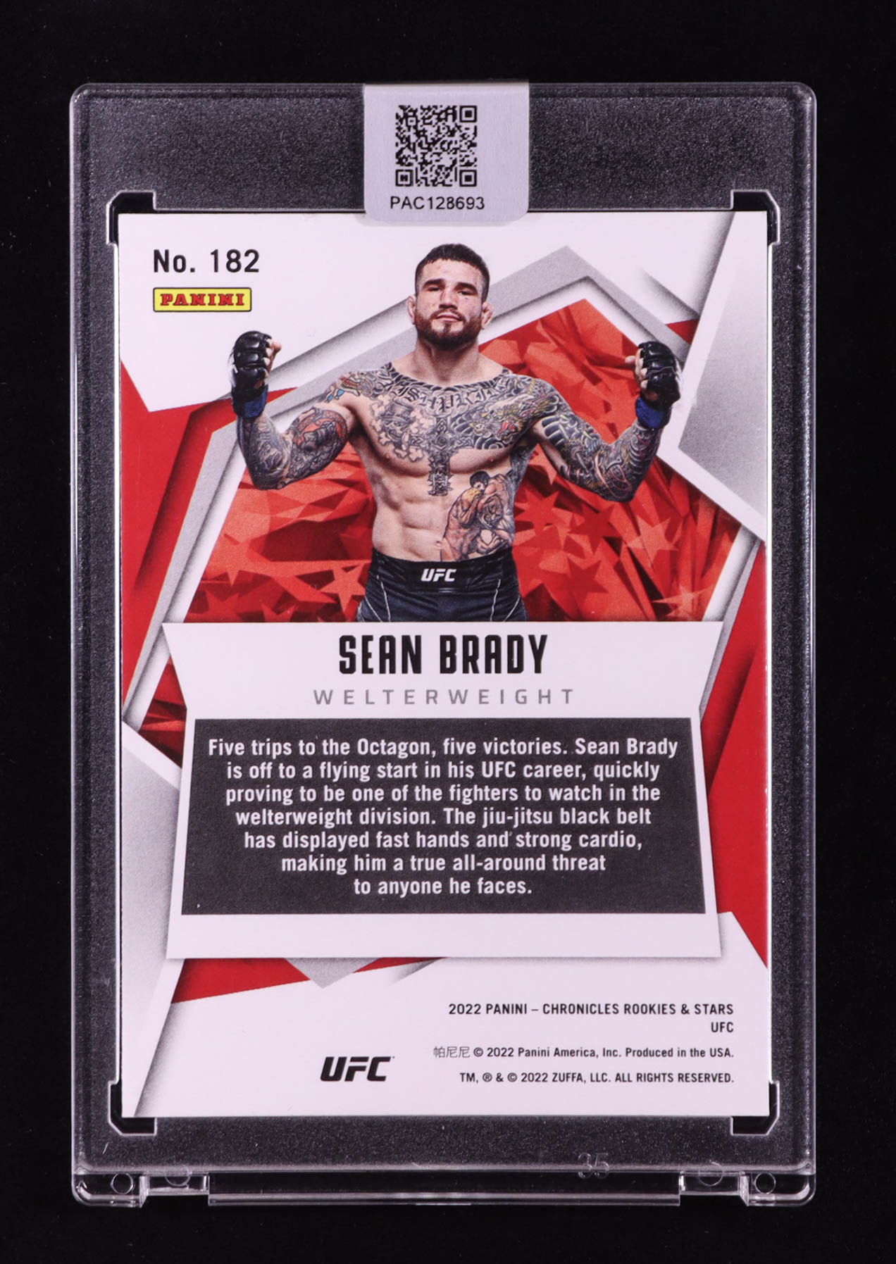 Sean Brady Signed 2022 Panini Chronicles UFC #182 Rookies and Stars RC (PA)