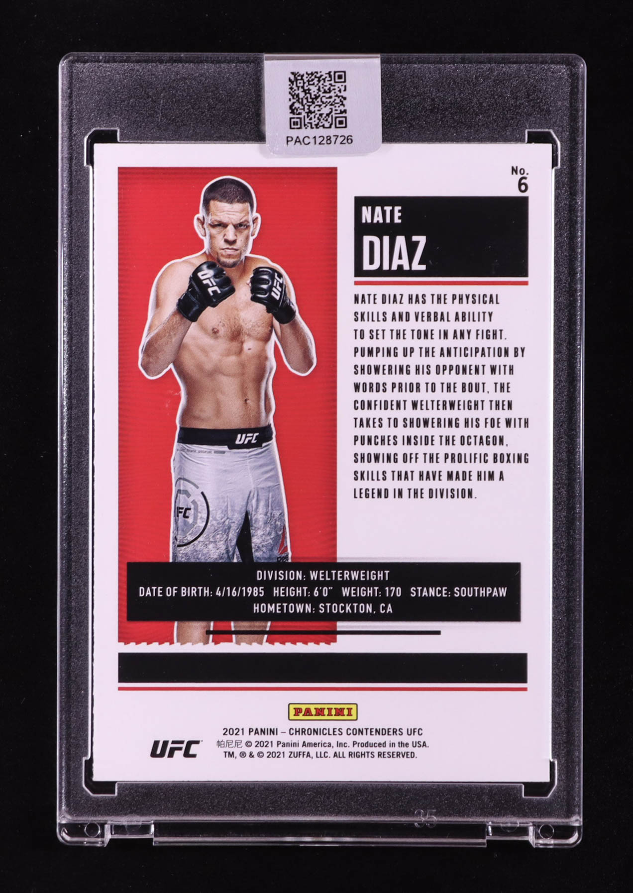 Nate Diaz Signed 2021 Panini Contenders Season Ticket UFC #6 (PA)