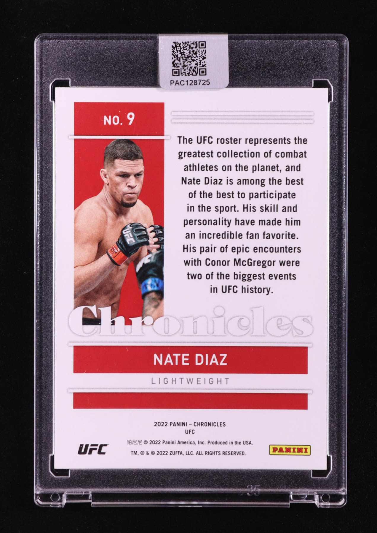 Nate Diaz Signed 2022 Panini Chronicles UFC Bronze #9 (PA)
