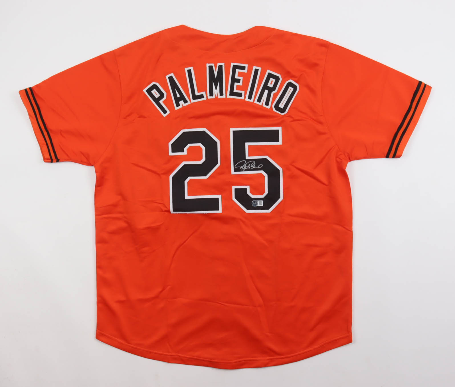Custom jersey with everything sewn on, size XL. Has been hand-signed by Rafael Palmeiro.