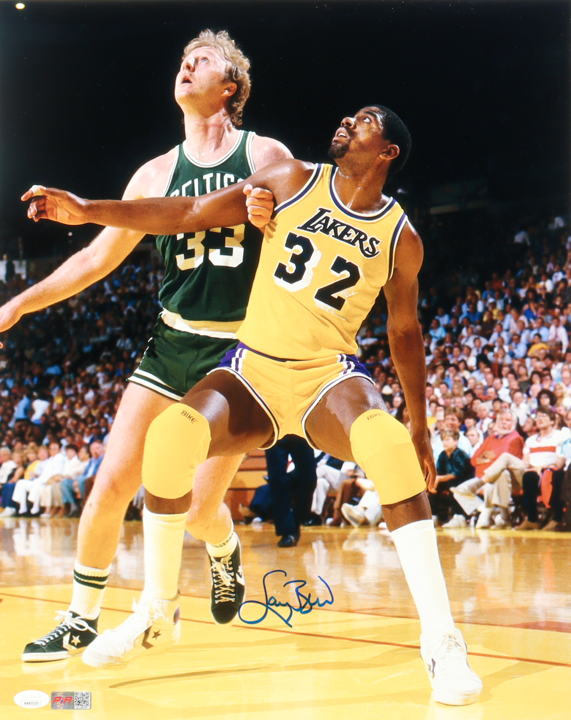 Photo measures 16" x 20" and has been hand-signed by Larry Bird (Boston Celtics, HOF).