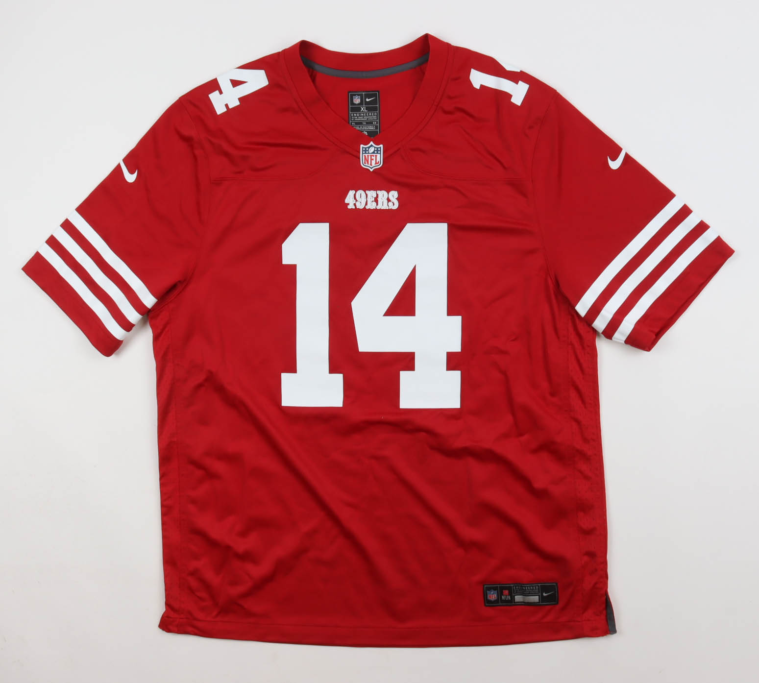 Nike jersey. Everything pressed on, size XL. Hand-signed and inscribed by Ricky Pearsall (San Francisco 49ers).