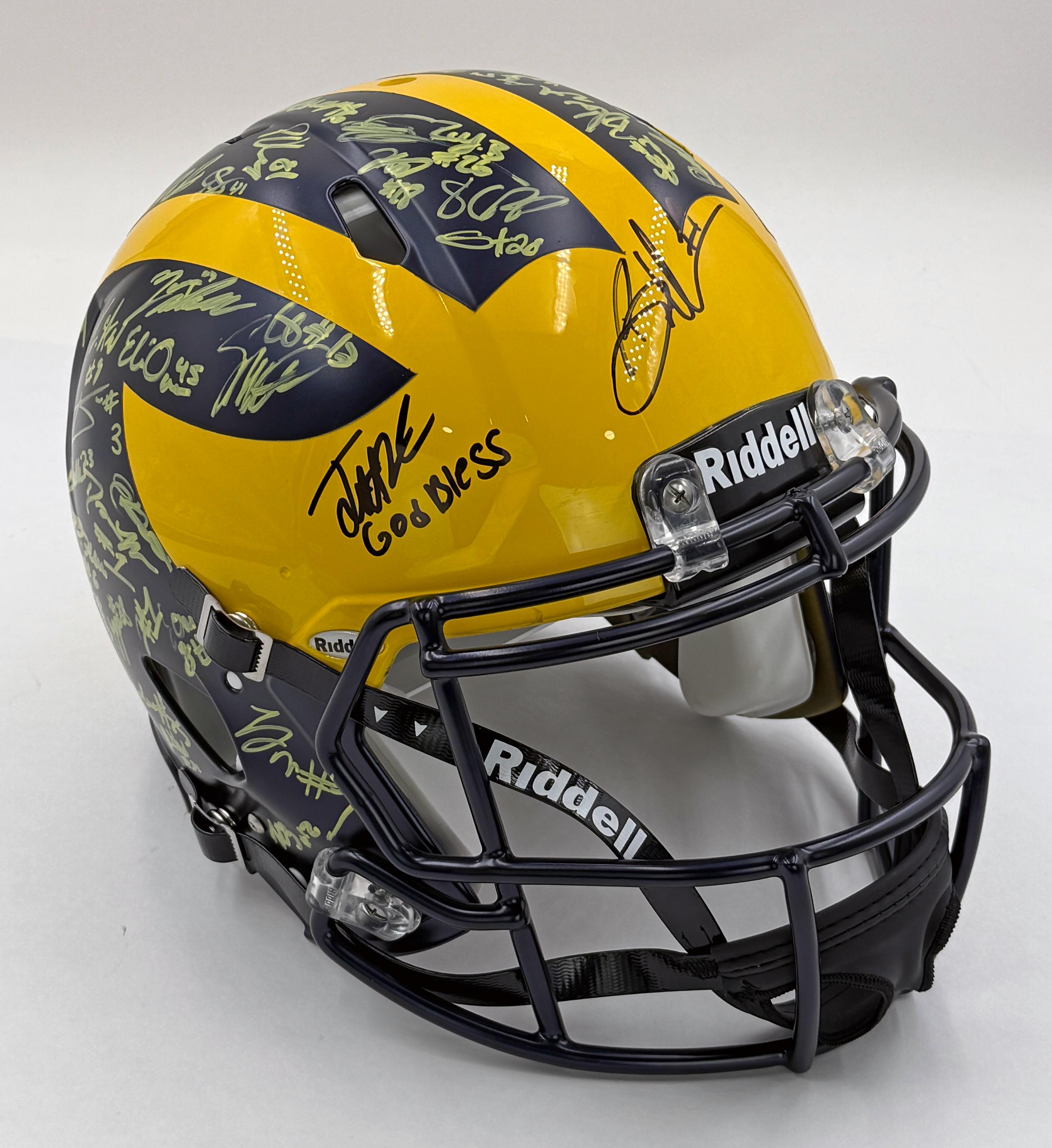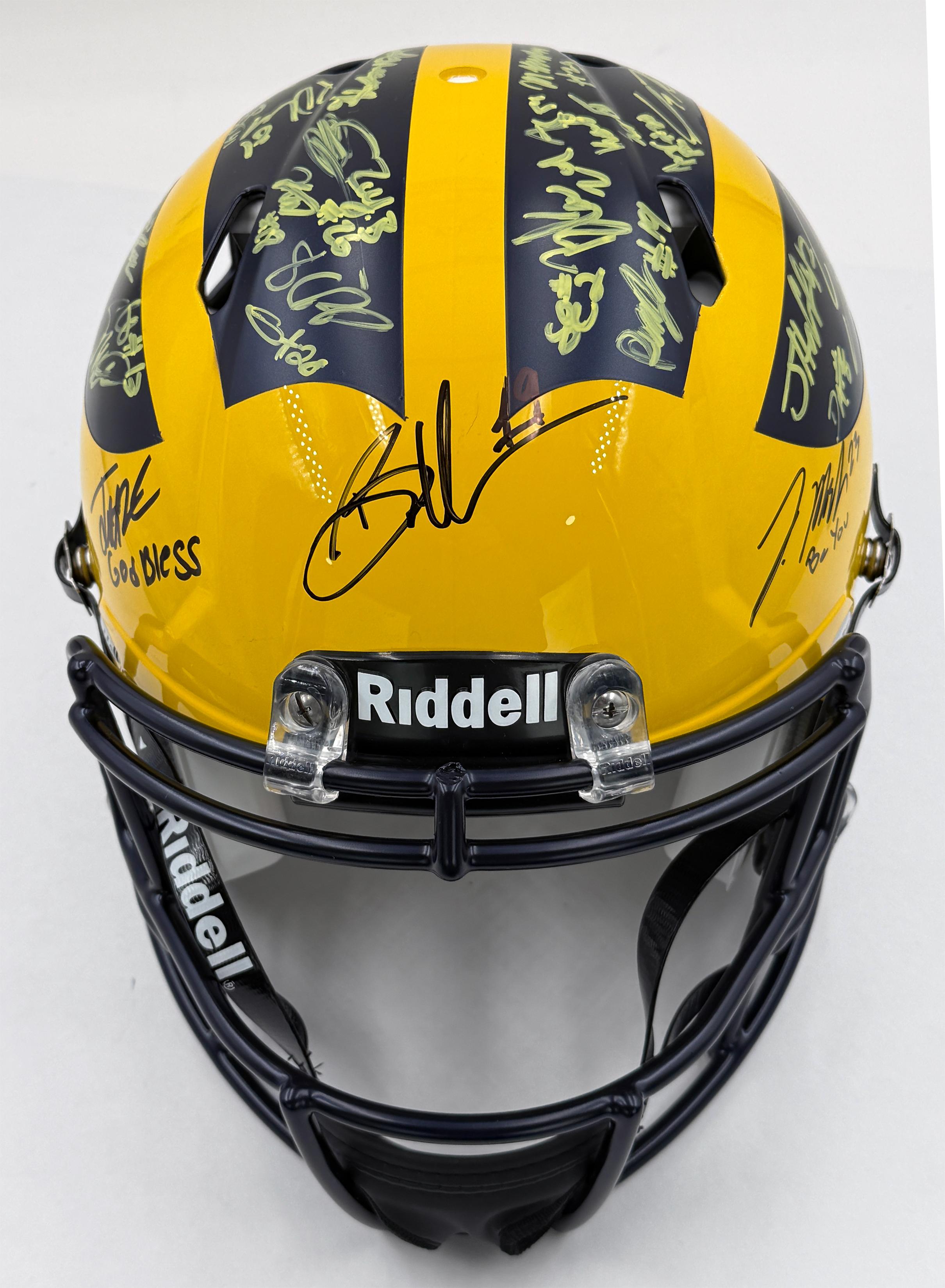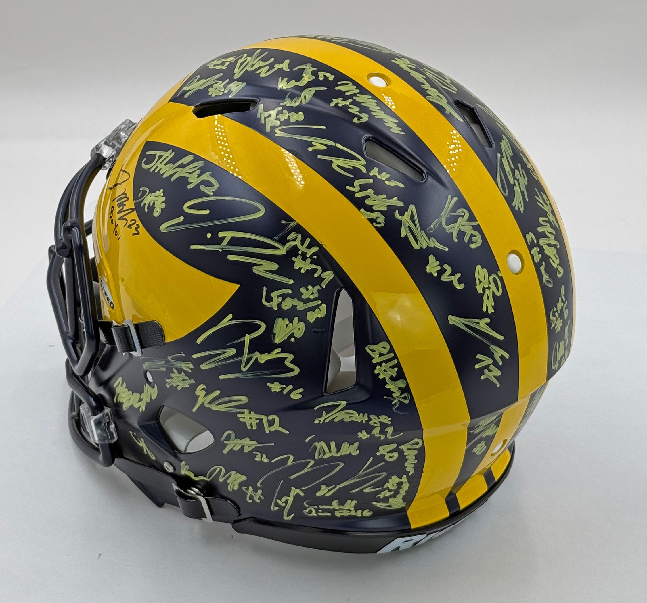 2025 Michigan Wolverines Full-Size Authentic On-Field Speed Helmet Team-Signed By (70+) with Bryce Underwood & Justice Haynes (JSA)