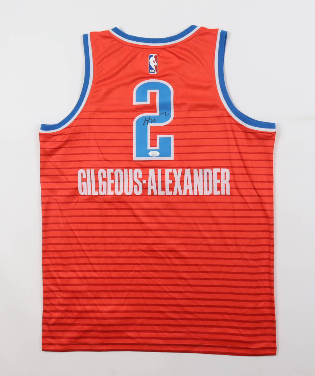 Jordan authentic jersey with everything pressed on, size 48. Hand-signed by Shai Gilgeous-Alexander (Oklahoma City Thunder).