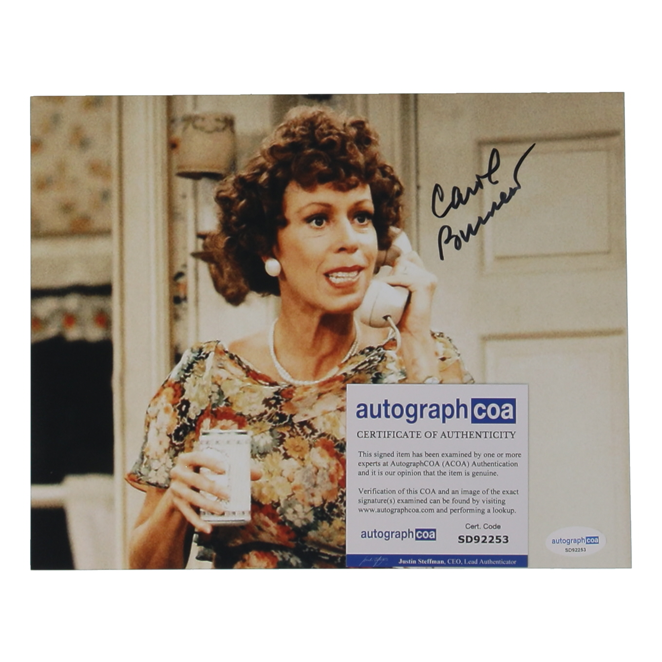 Photo measures 8" x 10" in size and has been hand-signed by Carol Burnett.