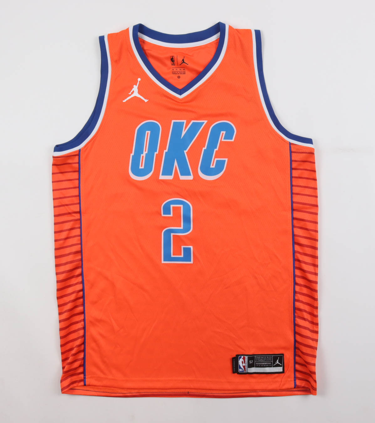 Jordan authentic jersey with everything pressed on, size 52. Hand-signed by Shai Gilgeous-Alexander (Oklahoma City Thunder).