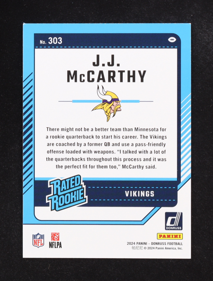 J.J. McCarthy 2024 Donruss #303 RR RC
