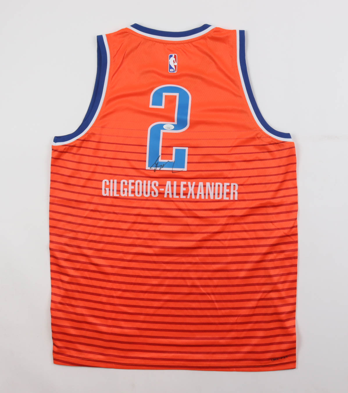 Jordan authentic jersey with everything pressed on, size 52. Hand-signed by Shai Gilgeous-Alexander (Oklahoma City Thunder).