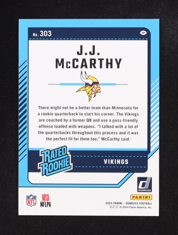 J.J. McCarthy 2024 Donruss #303 RR RC