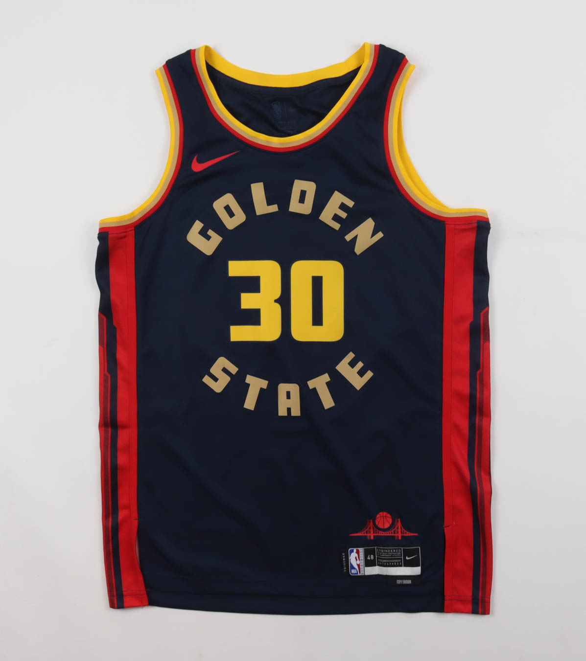 Nike authentic jersey with everything sewn on, size 48. Hand-signed by Stephen Curry (Golden State Warriors).