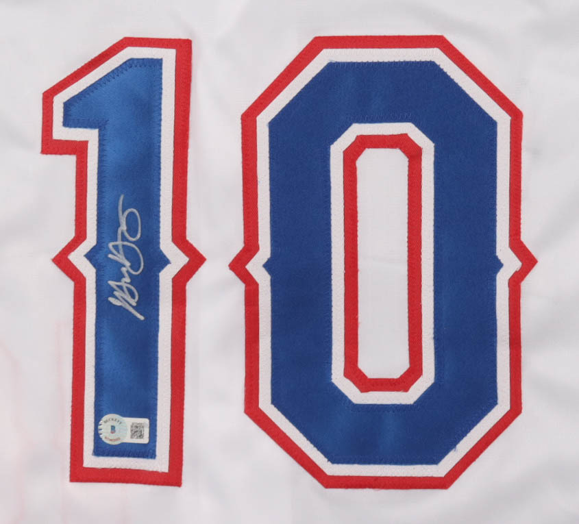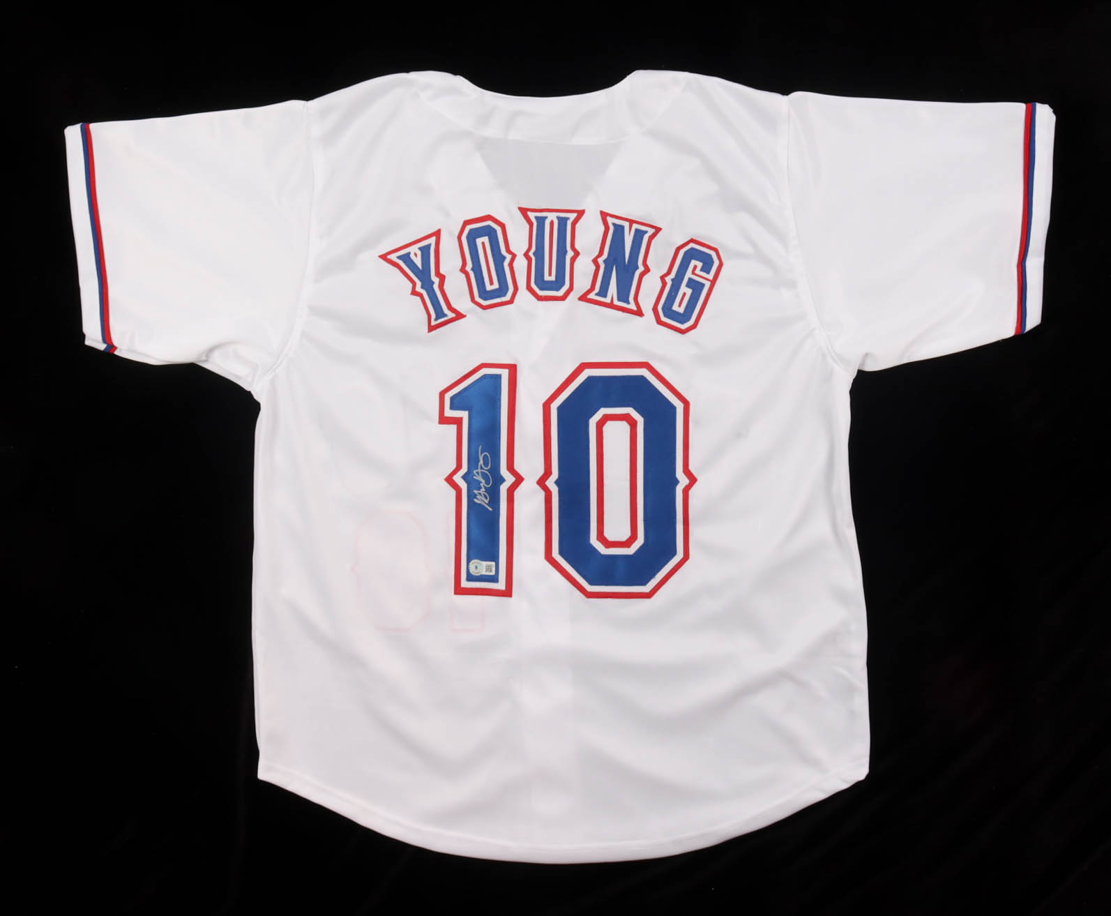 Custom jersey with everything sewn on, size XL. Hand-signed by Michael Young.