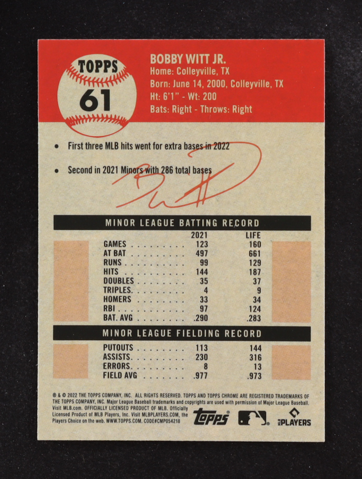 Bobby Witt Jr. 2022 Topps Chrome Platinum Anniversary #61 RC