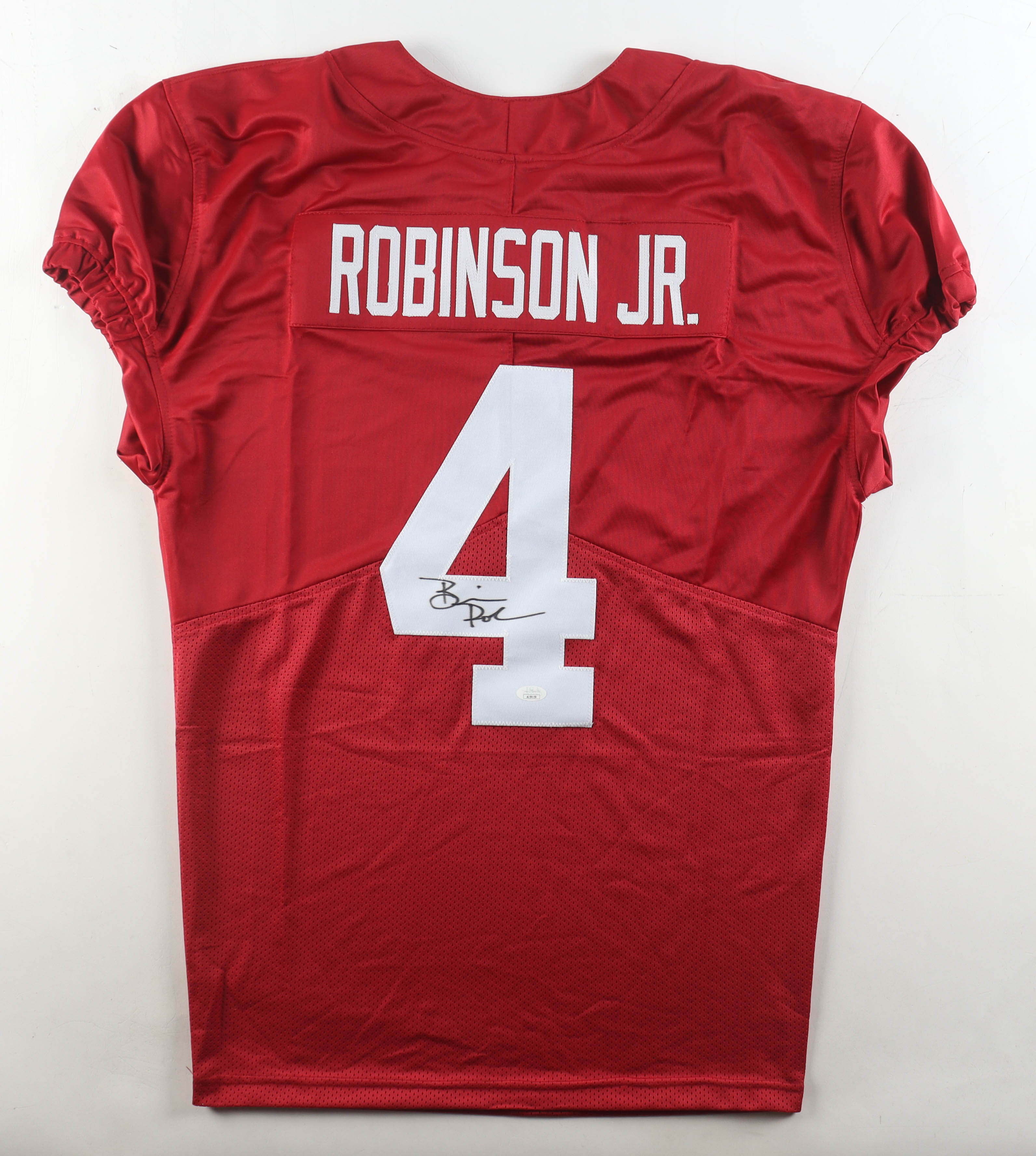 Custom jersey with everything sewn on, size XL. Hand-signed by Brian Robinson Jr..
