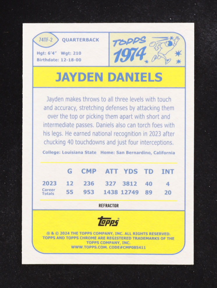 Jayden Daniels 2024 Topps Chrome '74 Topps Refactors #74TF2 RC
