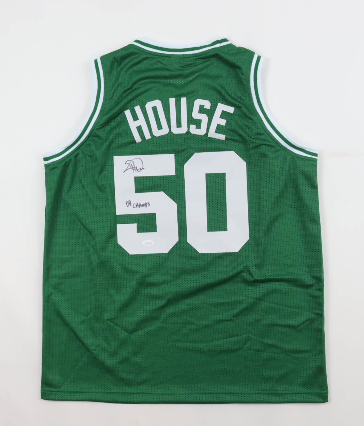 Custom jersey with everything sewn on, size XL. Hand-signed and inscribed by Eddie House (Boston Celtics).