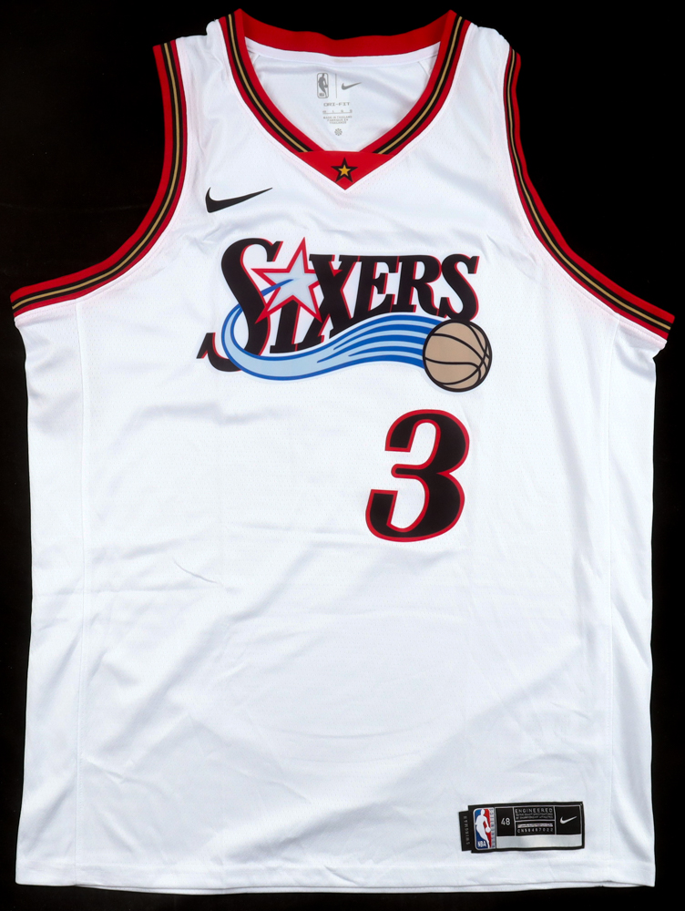 Nike jersey with everything pressed on, size 48. Hand-signed by Allen Iverson (Philadelphia 76ers, HOF).
