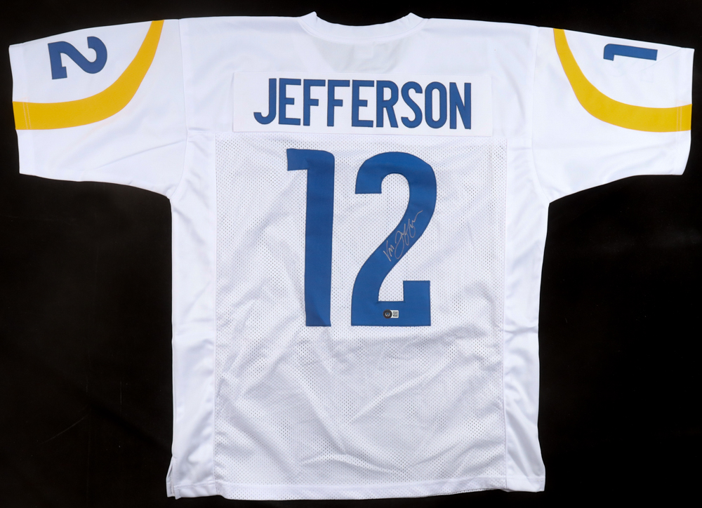 Custom jersey with everything sewn on, size XL. Hand-signed by Van Jefferson.