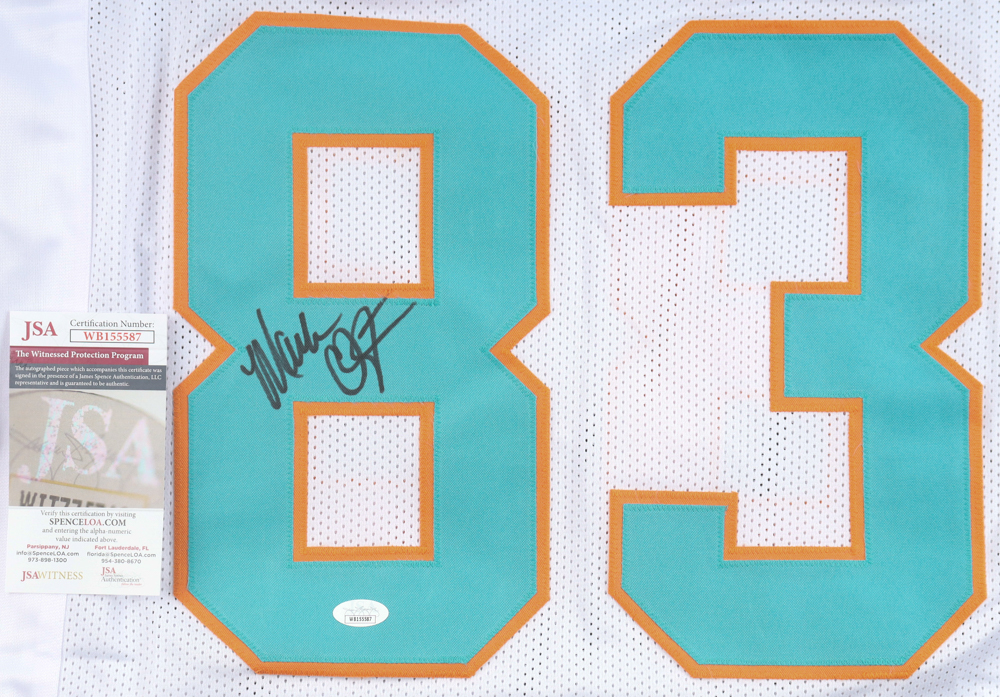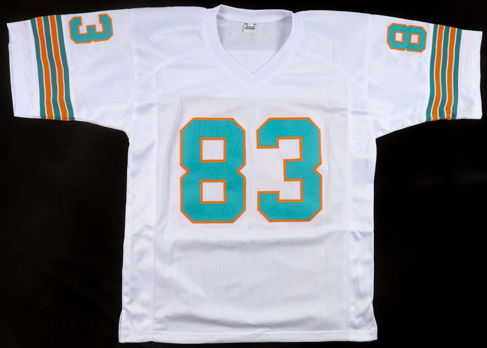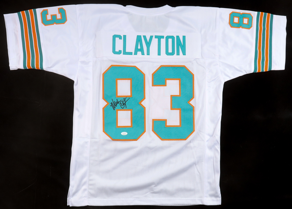 Custom jersey. Everything is sewn on, size L. Hand-signed by Mark Clayton.