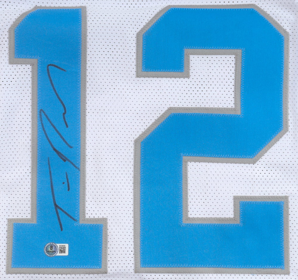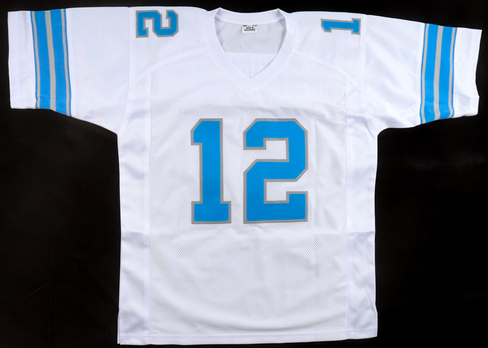 Custom jersey with everything sewn on, size XL. Hand-signed by Tim Patrick.