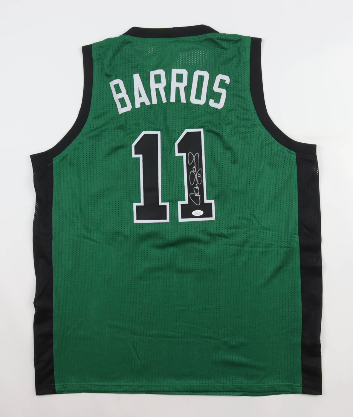 Custom jersey with everything sewn on, size XL. Hand-signed by Dana Barros (Boston Celtics).