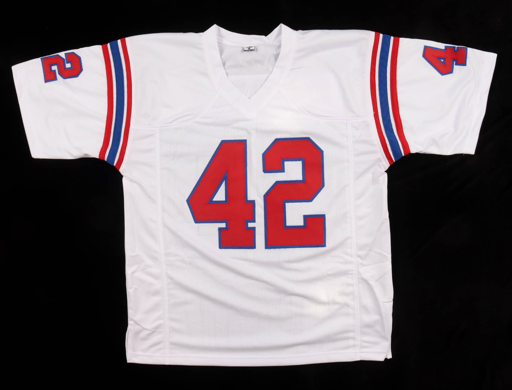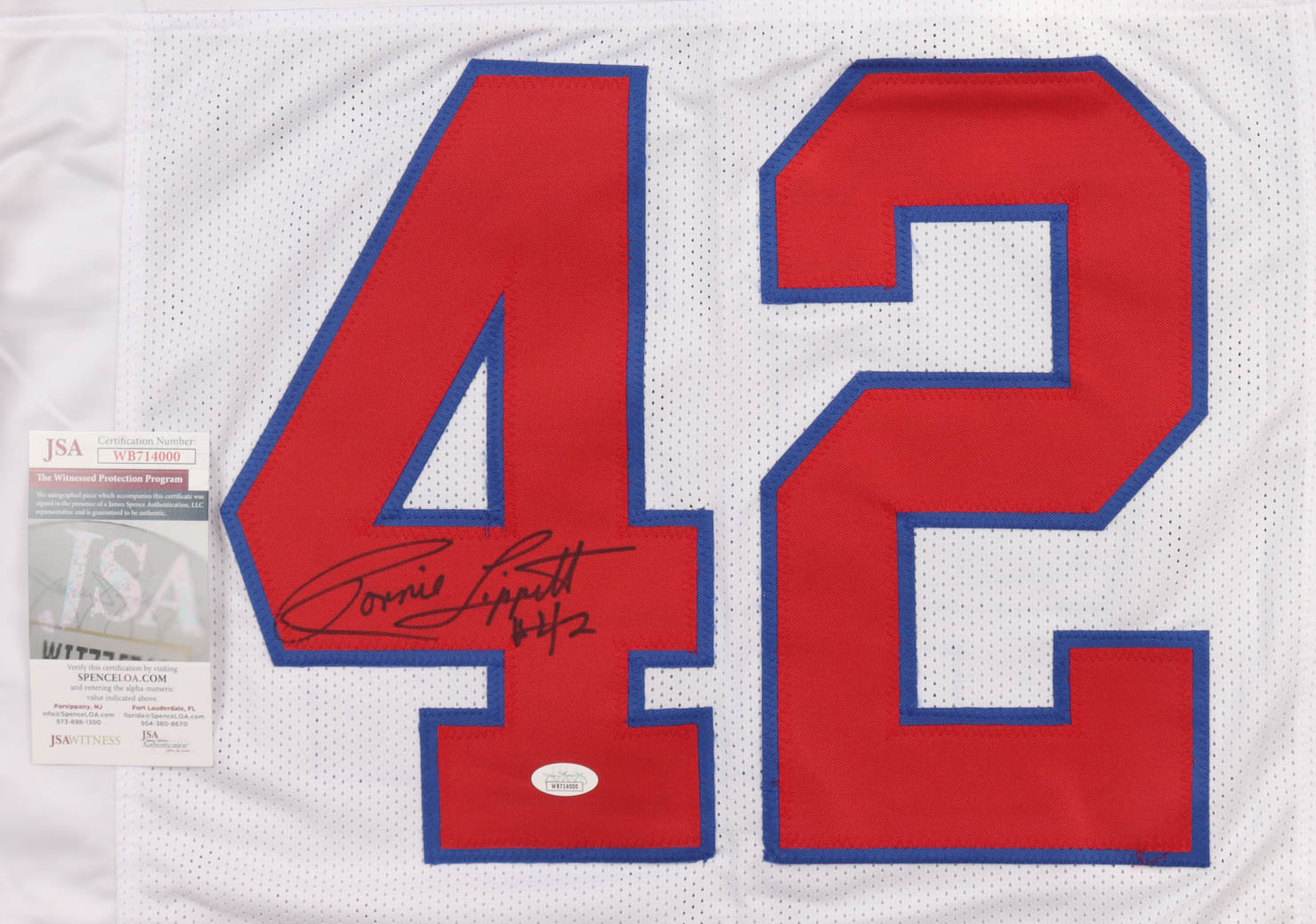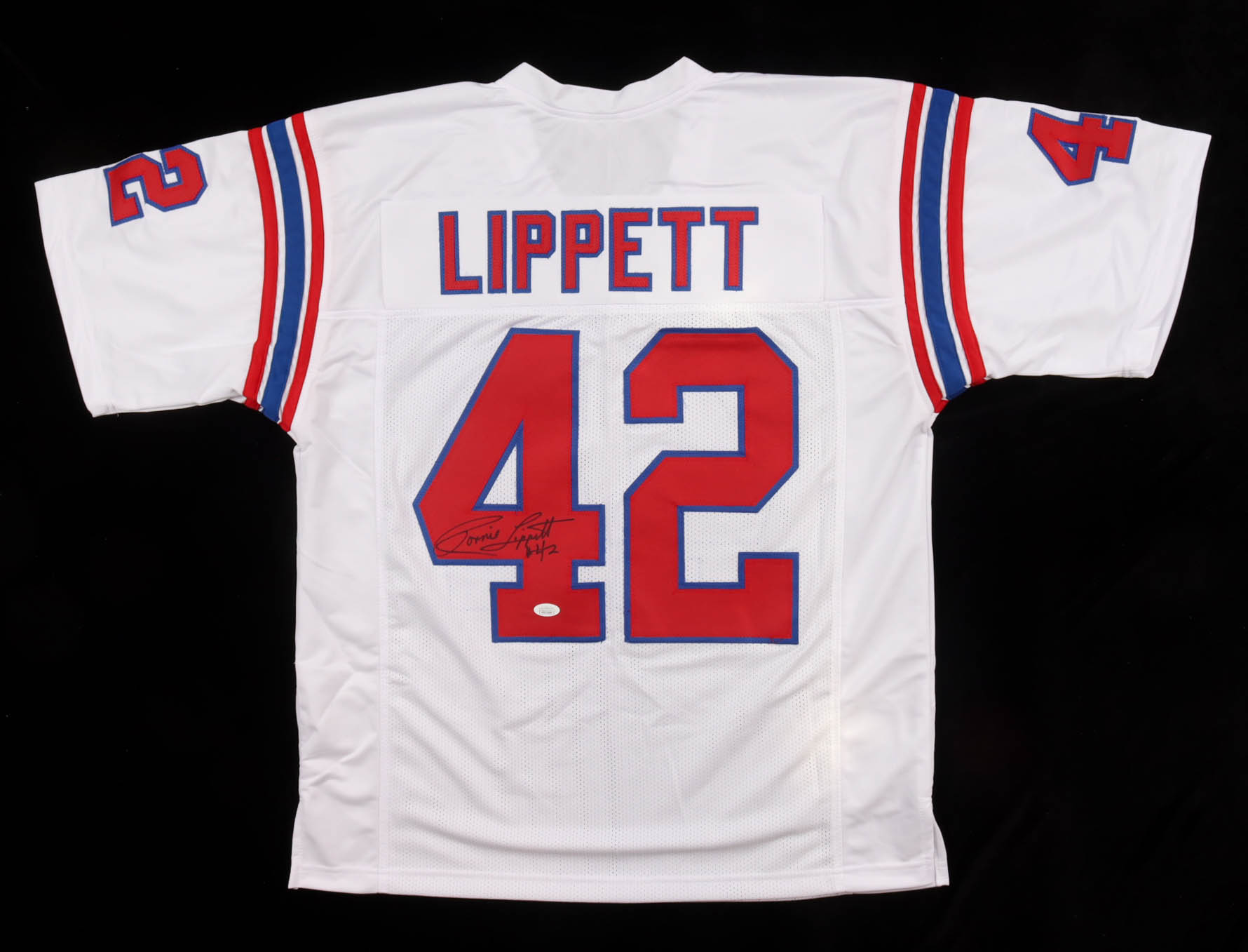 Custom jersey with everything sewn on, size XL. Hand-signed by Ronnie Lippett (New England Patriots).