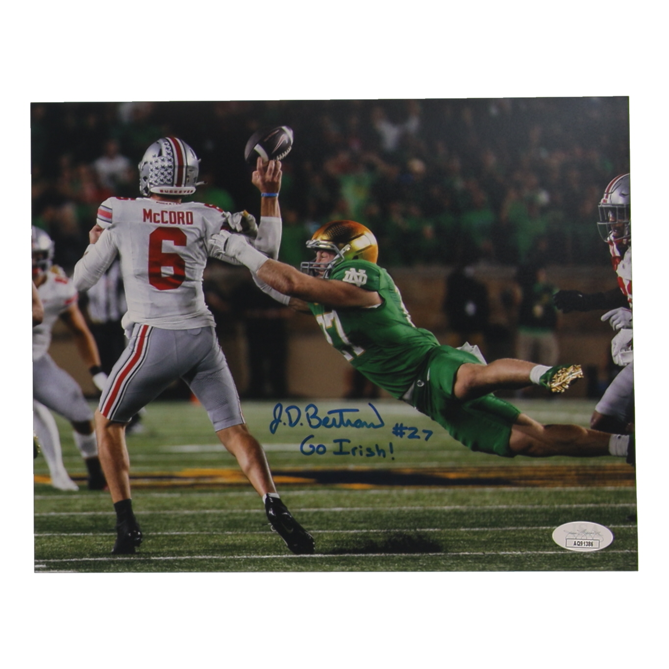JD Bertrand Signed Notre Dame Fighting Irish 8x10 Photo Inscribed "Go Irish!" (JSA)