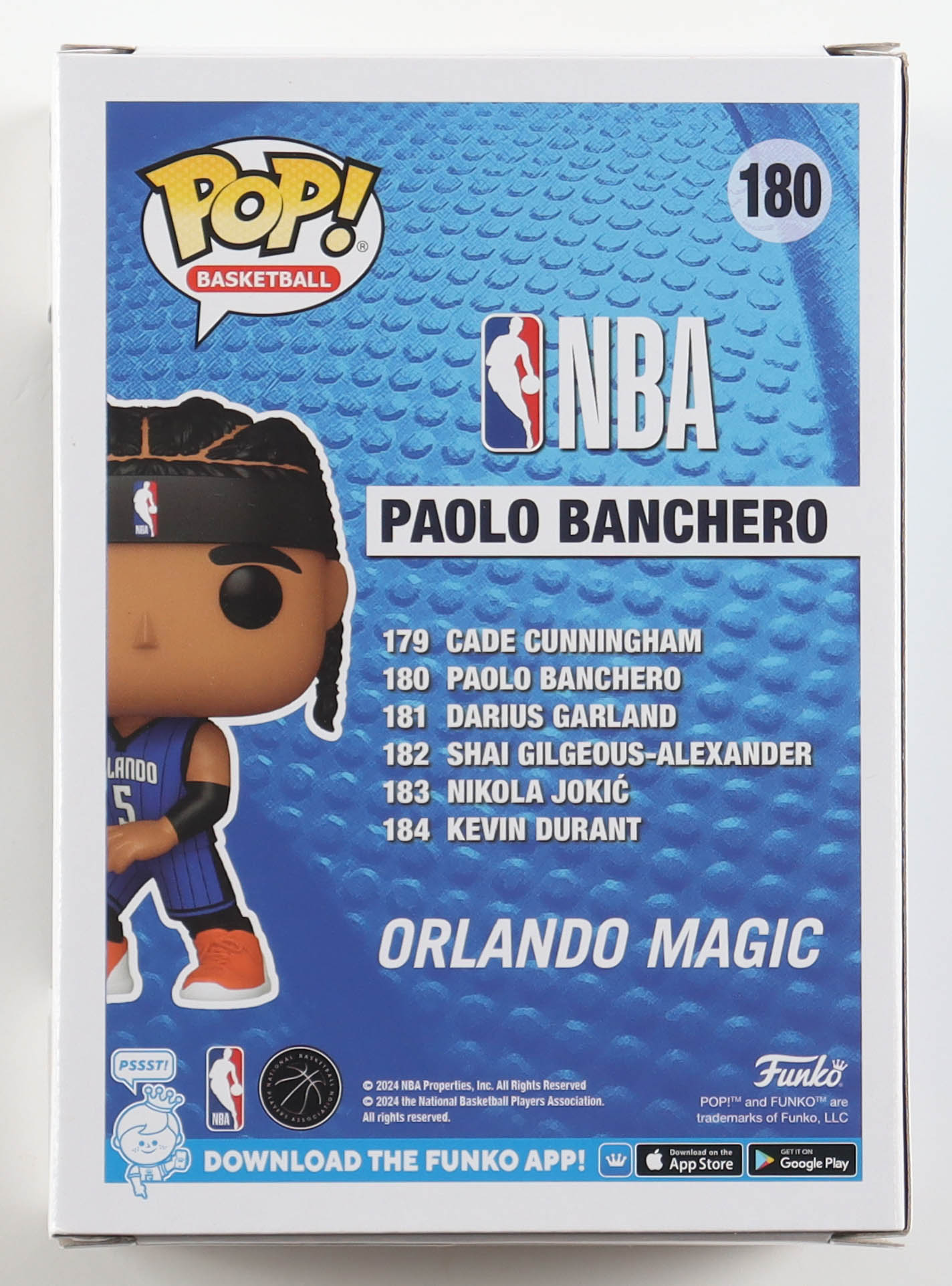 Vinyl figure measures approximately 4" tall and has been hand-signed on the packaging by Paolo Banchero (Orlando Magic).