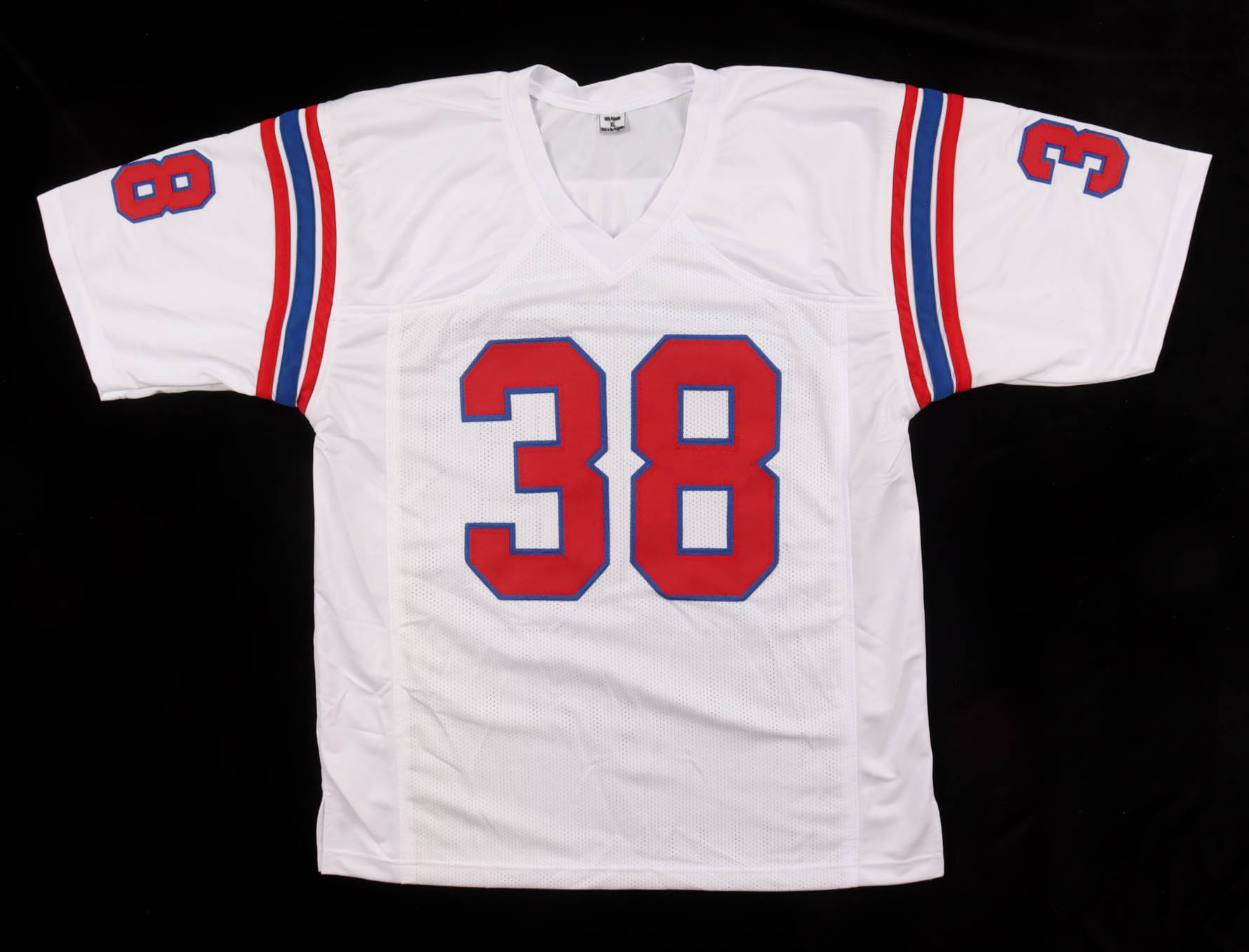 Custom jersey with everything sewn on, size XL. Hand-signed and inscribed by Roland James (New England Patriots).