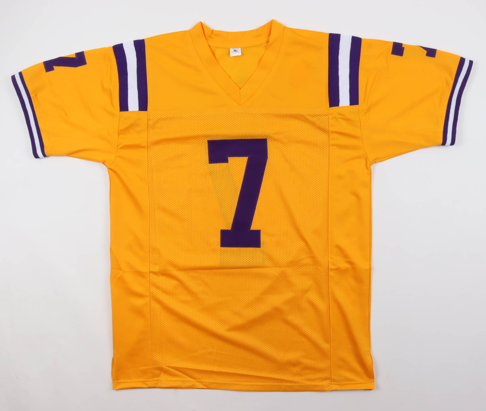 Custom jersey with everything sewn on, size XL. Hand-signed by Tyrann Mathieu.