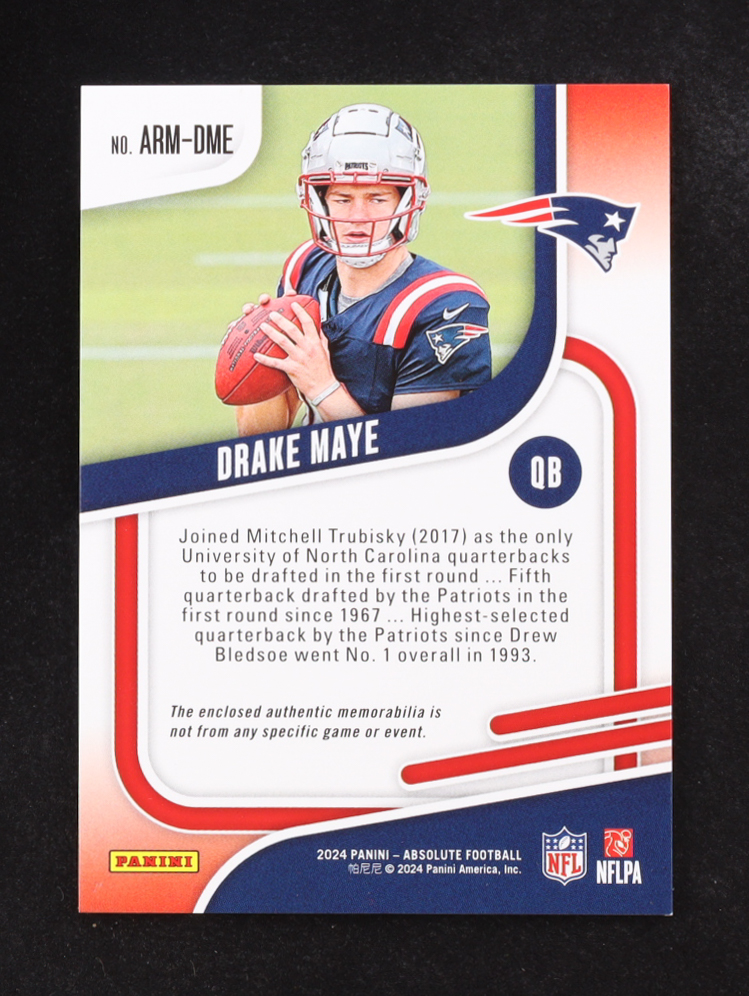 Drake Maye 2024 Panini Absolute Rookie Materials #ARM-DME RC