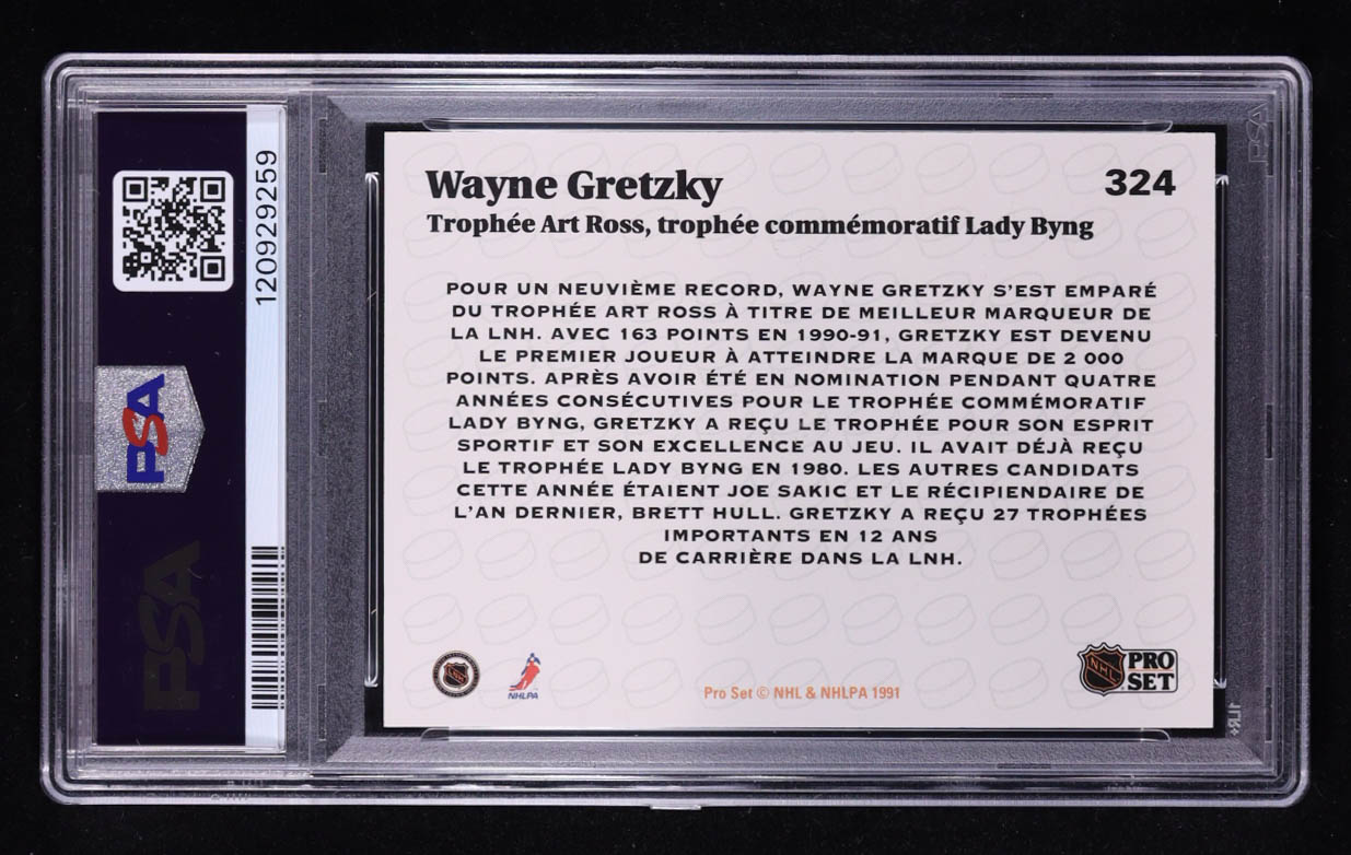 Wayne Gretzky 1991-92 Pro Set French #324 Ross/Lady Byng (PSA 10)