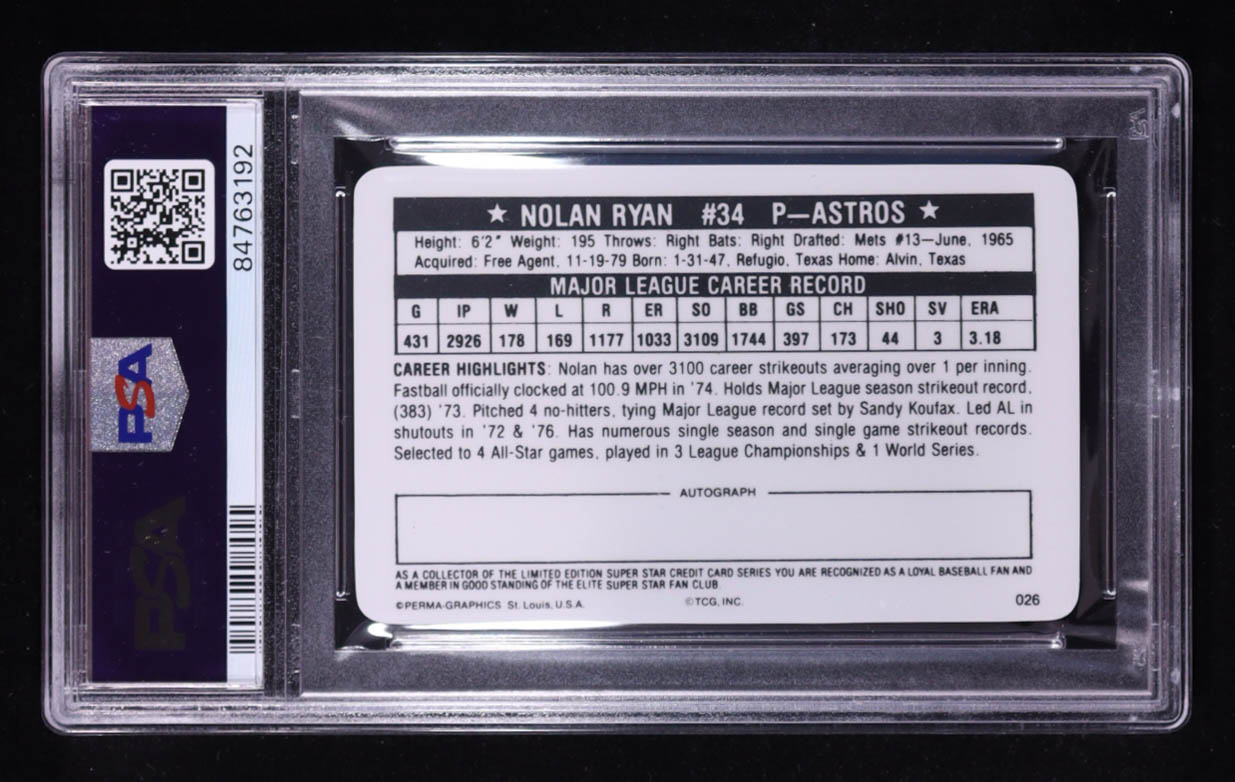 Nolan Ryan 1981 Perma-Graphic Credit Cards #26 (PSA 9)