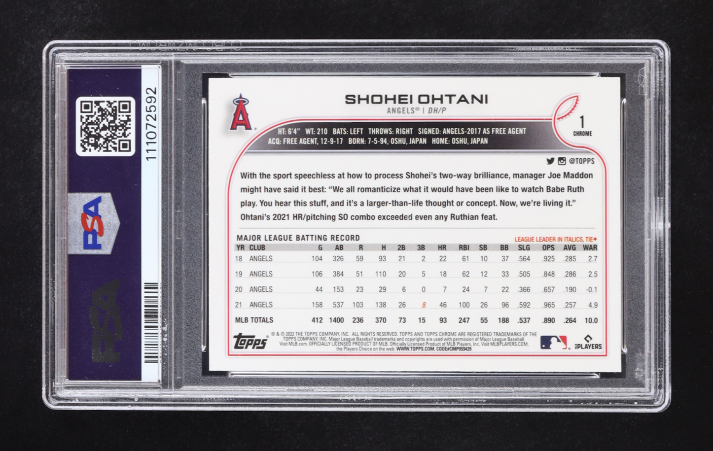 Shohei Ohtani 2022 Topps Chrome Sonic Prism Refractor #1 (PSA 9)