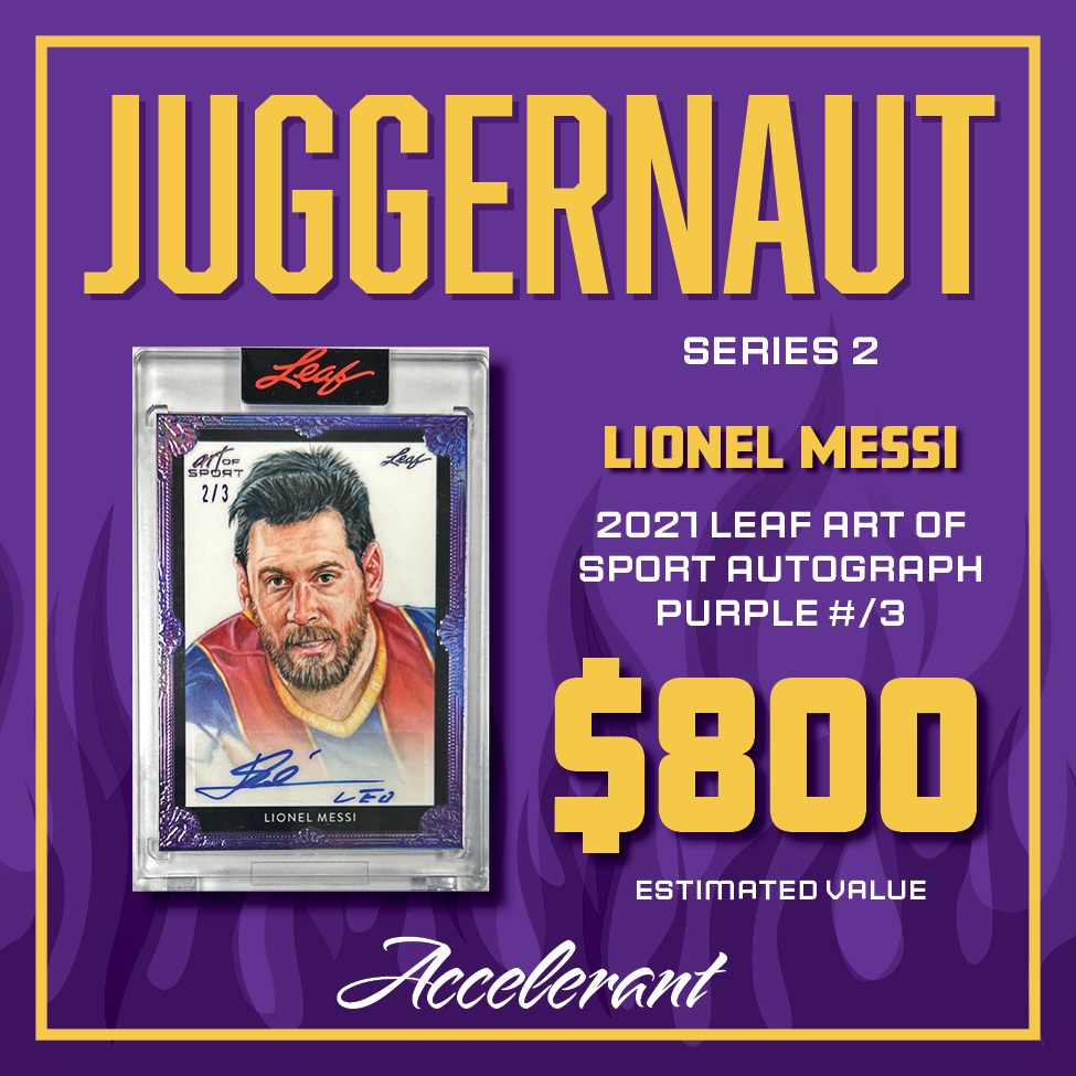 $800 – LIONEL MESSI 2021 LEAF ART OF SPORT PURPLE AUTOGRAPH #/3