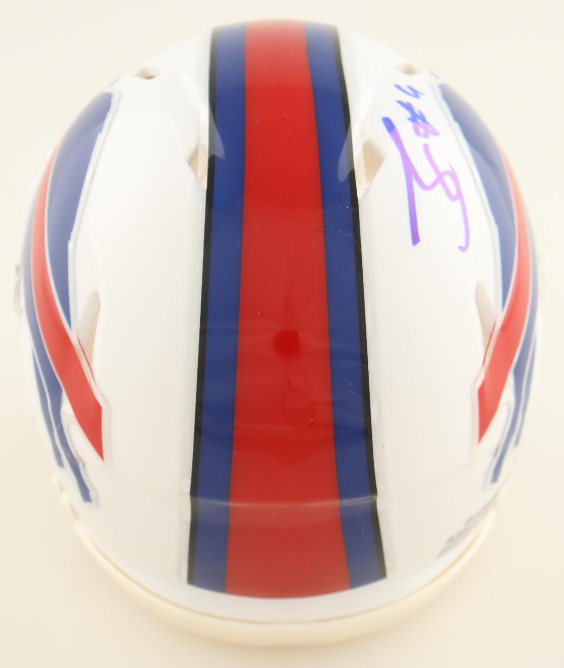 Riddell Buffalo Bills speed mini helmet. Hand-signed by James Cook.