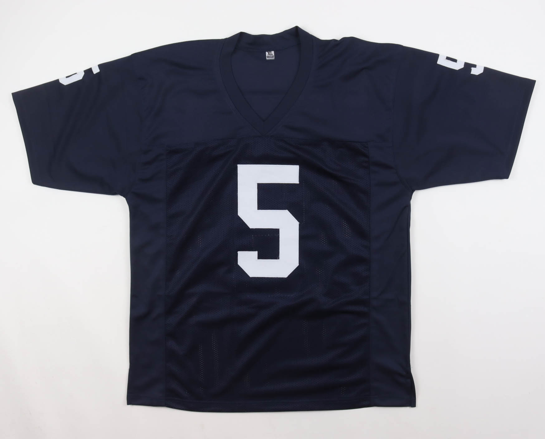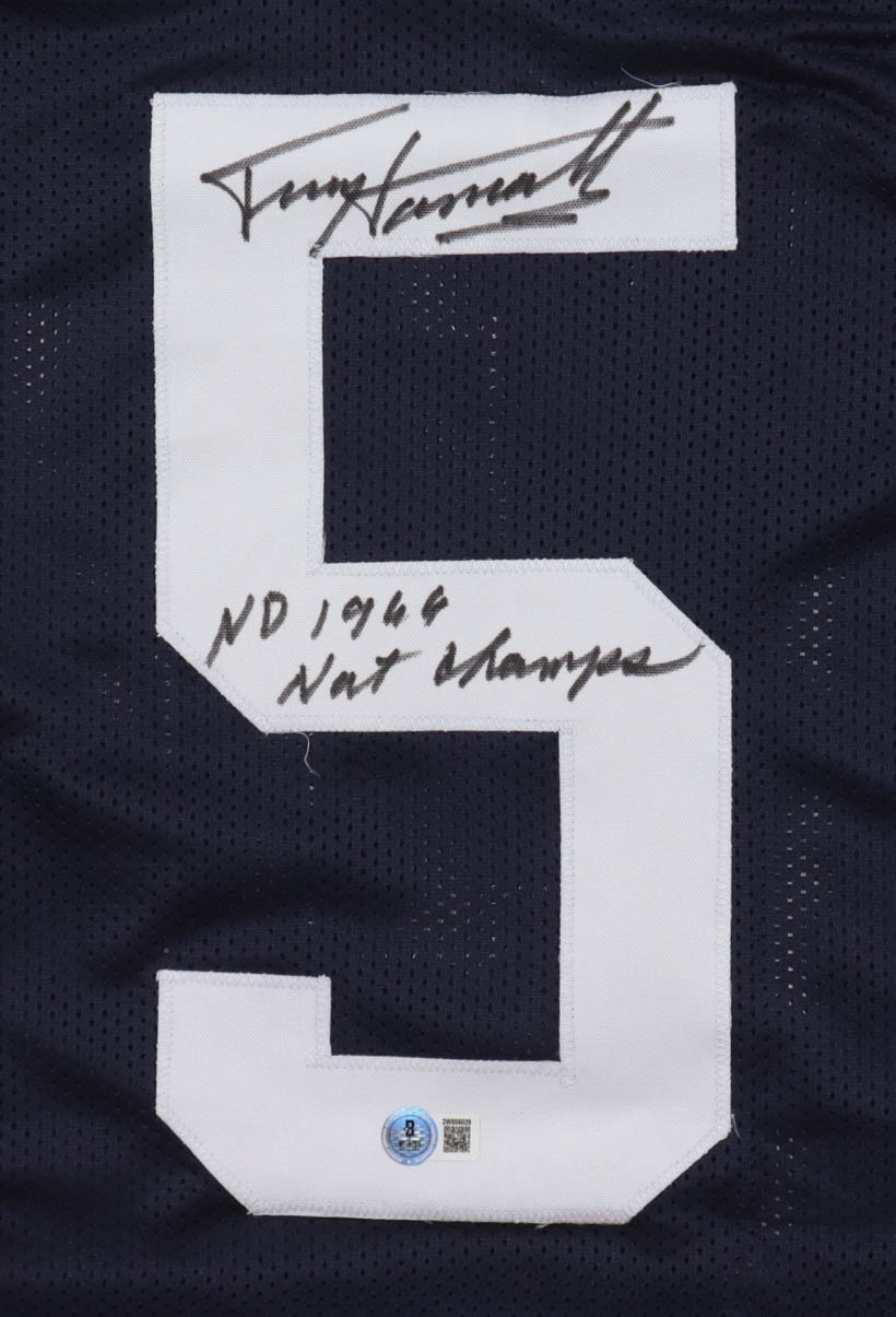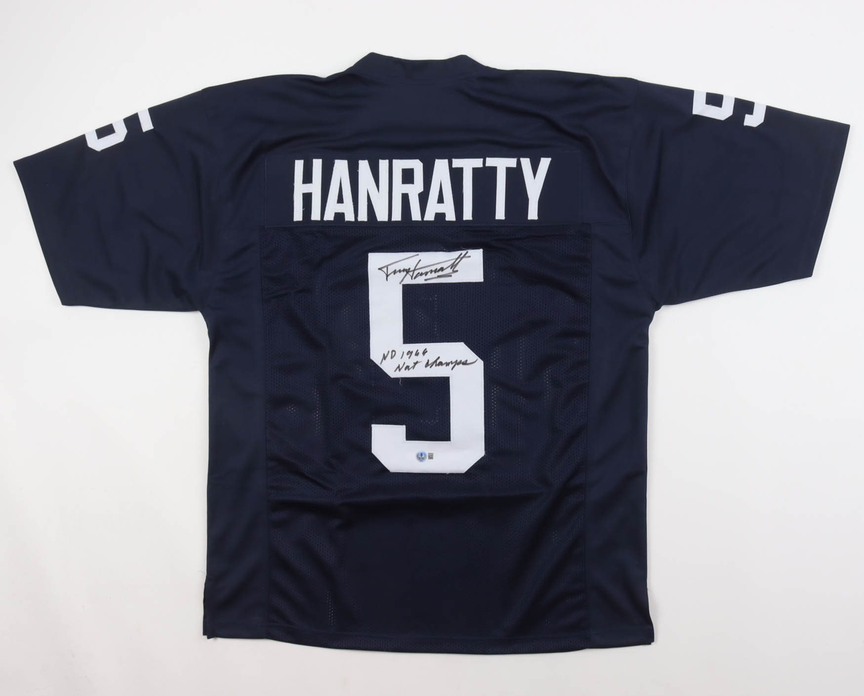 Custom jersey with everything sewn on, size XL. Hand-signed and inscribed by Terry Hanratty (Notre Dame Fighting Irish).