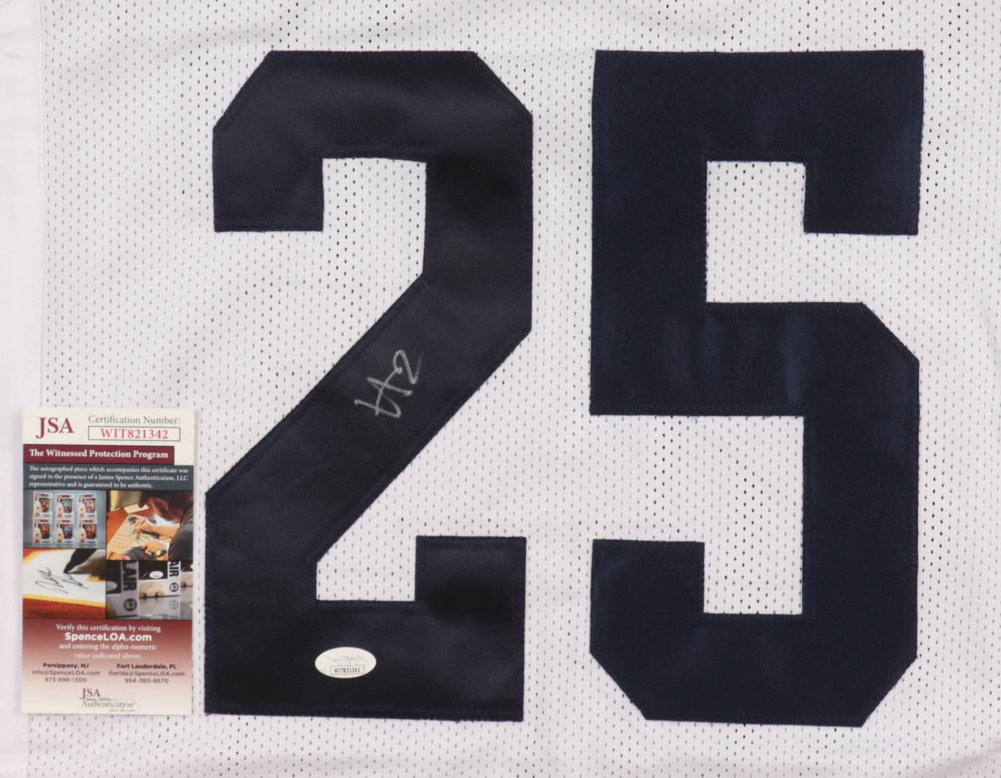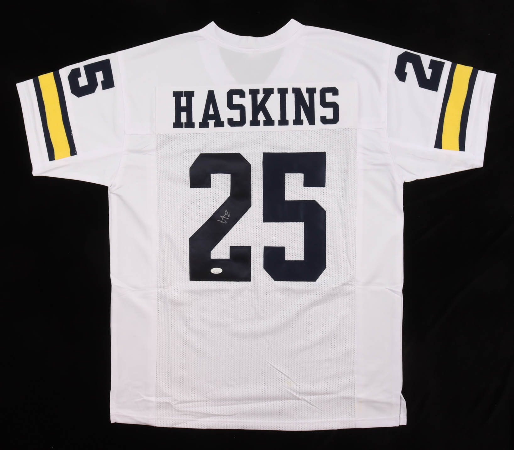 Custom jersey with everything sewn on, size XL. Hand-signed by Hassan Haskins. Please note, there is staining at the bottom of the jersey. See photos regarding the condition of the item.