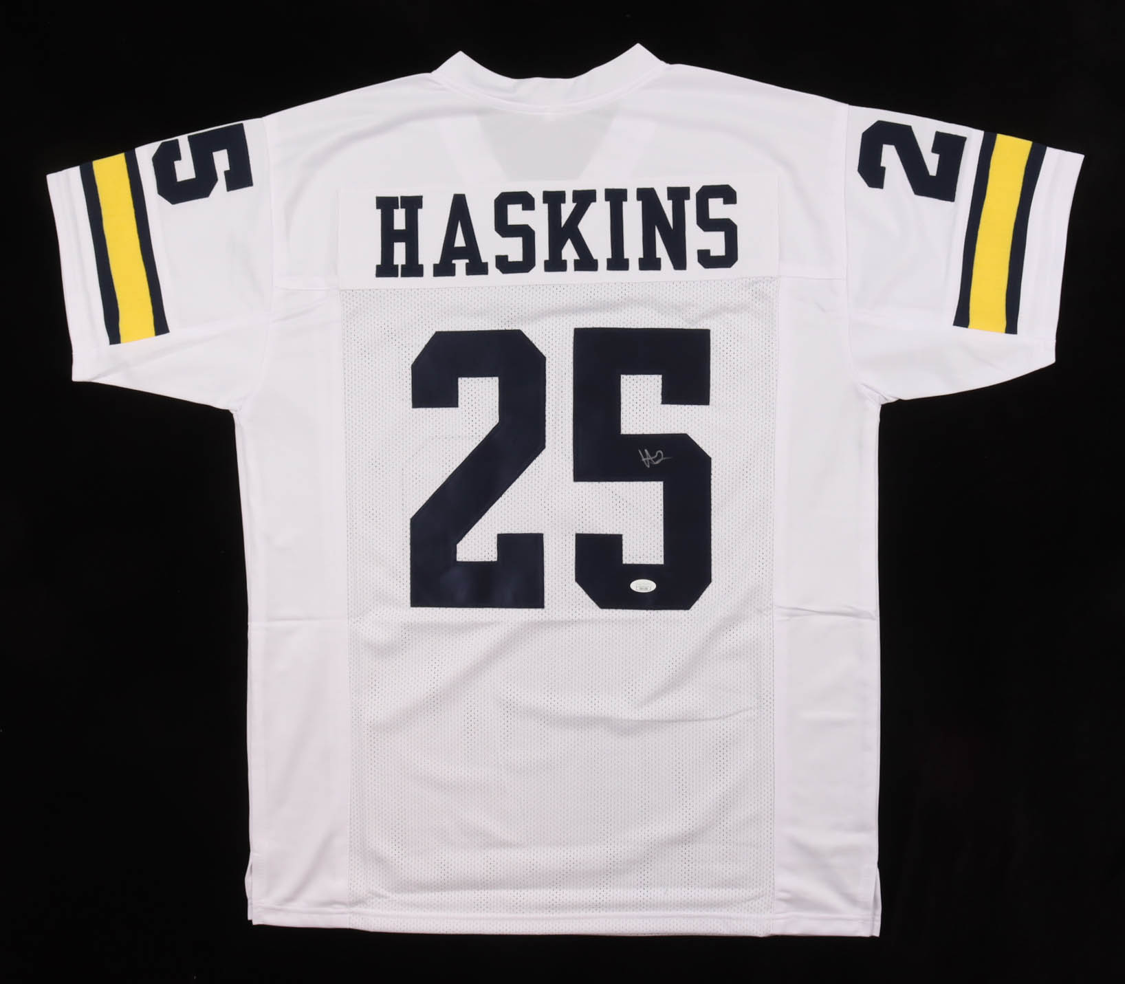 Custom jersey with everything sewn on, size XL. Hand-signed by Hassan Haskins.