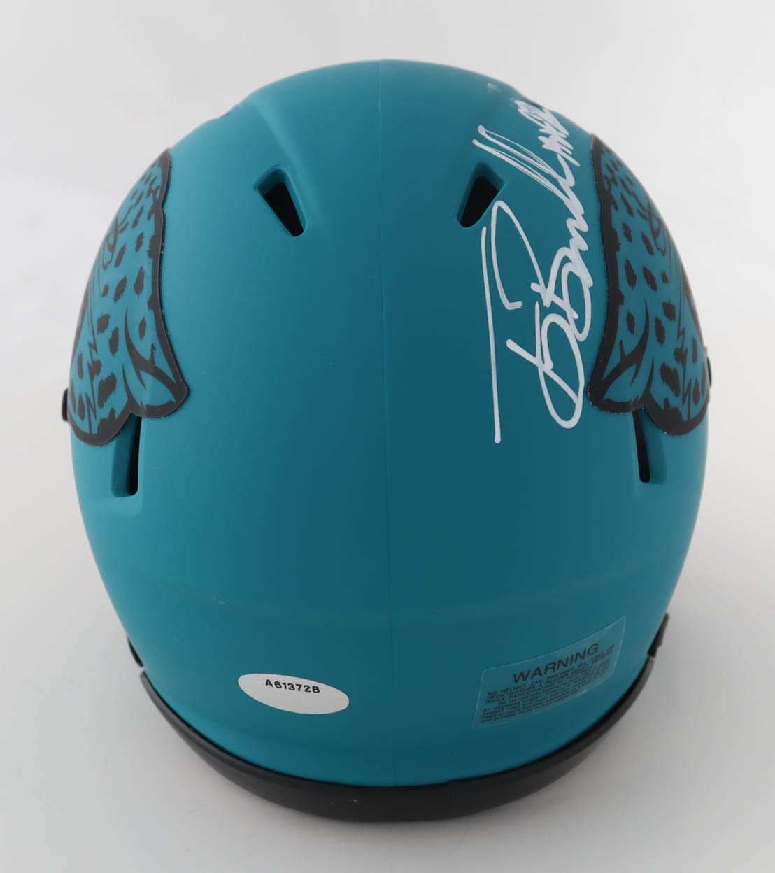 Riddell Jacksonville Jaguars Rave Alternate Speed mini helmet has been hand-signed and inscribed by Tony Boselli (HOF). Please note the signature is smudged, see photos for more details.