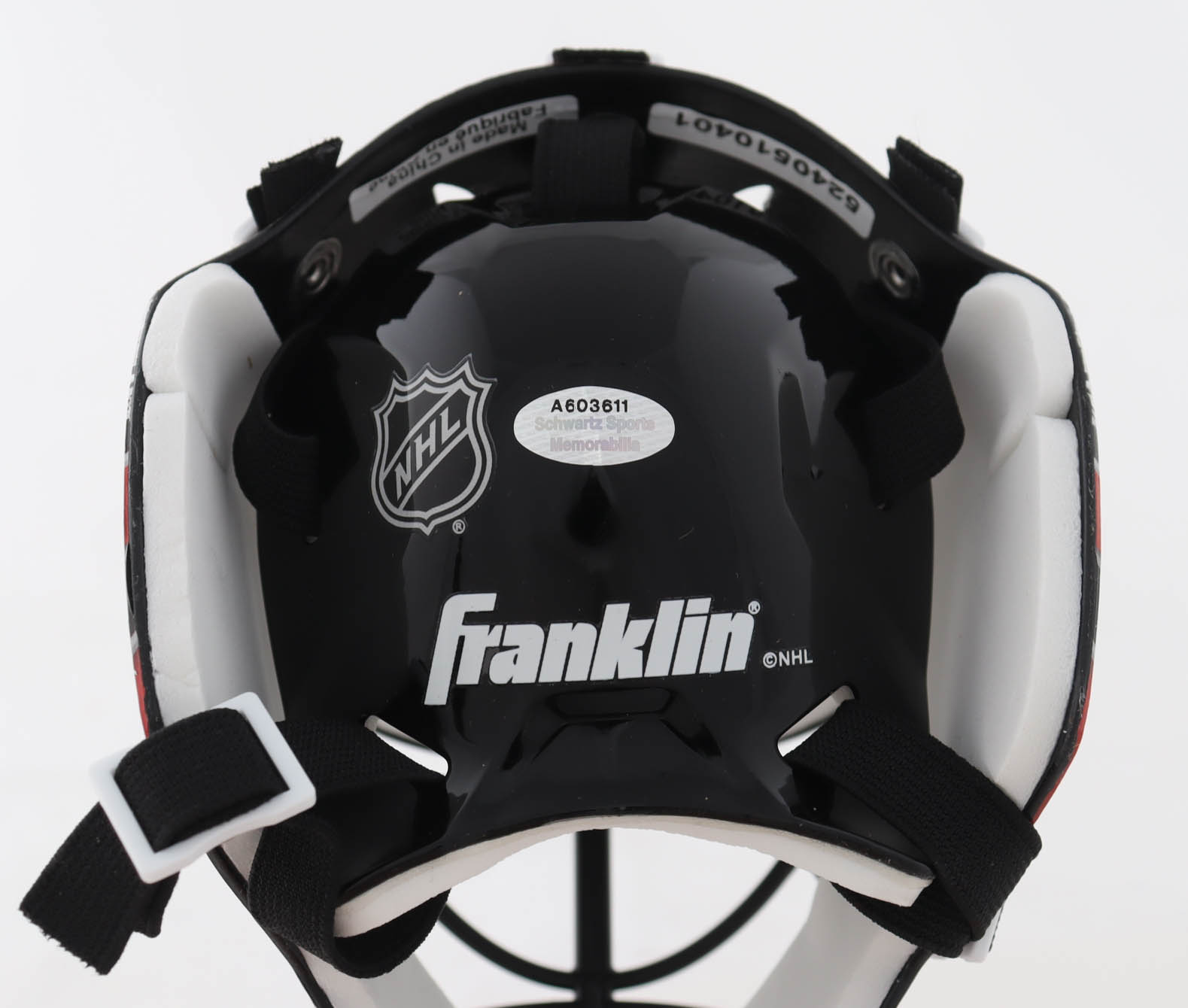 Franklin Chicago Blackhawks mini goalie mask has been hand-signed by Ed Belfour (HOF).