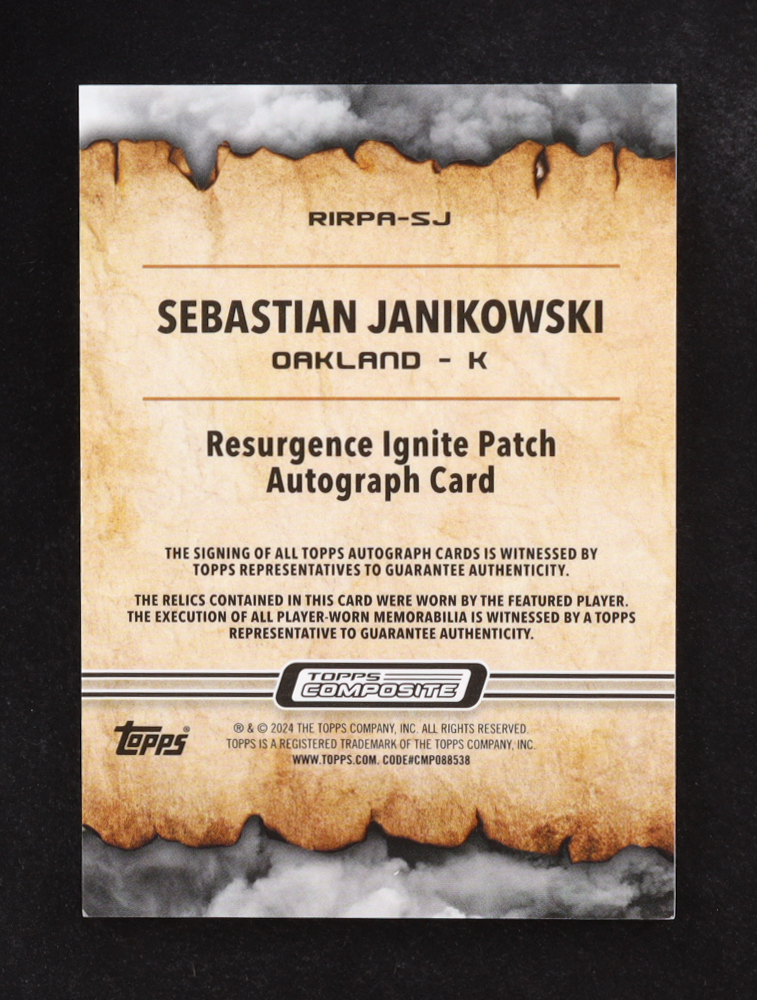 Sebastian Janikowski 2023 Topps Composite Resurgence Ignite Patch Autographs #RIRPASJ #128/149