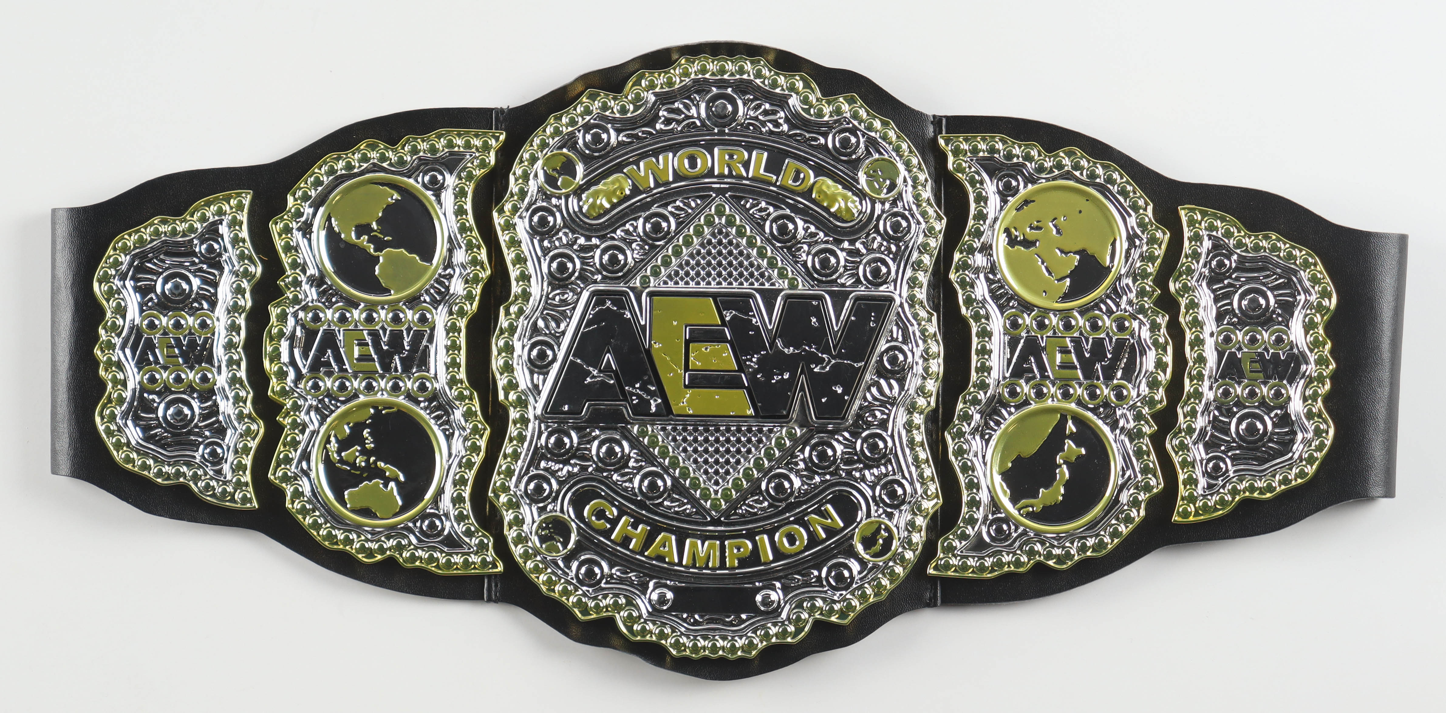 AEW replica toy Championship Belt measures approximately 37"in length. Hand-signed by Dante Martin.