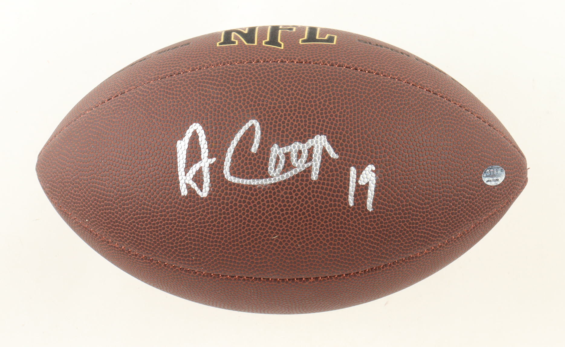 Wilson NFL Super Grip Cover Football. Hand-signed by Amari Cooper (Dallas Cowboys). Please note, there are minor stains throughout the football.
