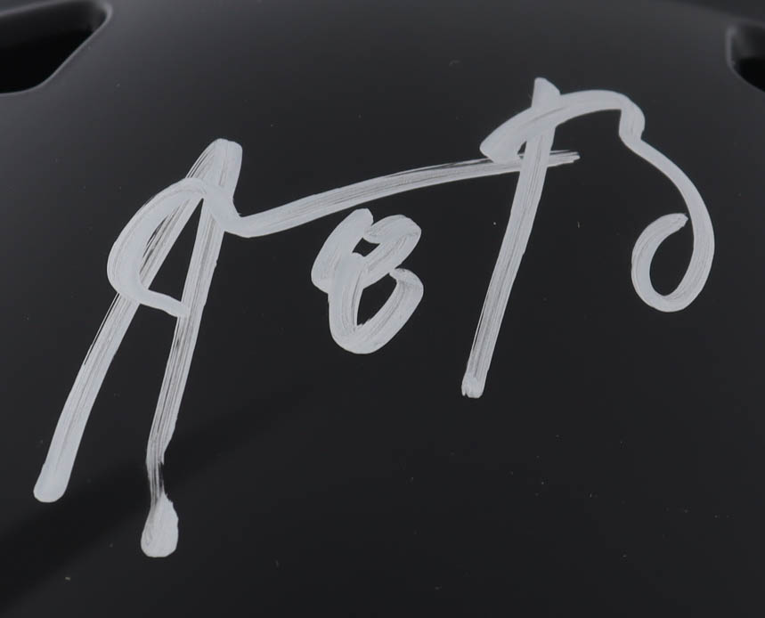 Riddell full-size speed replica helmet has been hand-signed by Aaron Rodgers. Please note the helmet is a New York Jets helmet with Pittsburgh Steelers decal replacements.