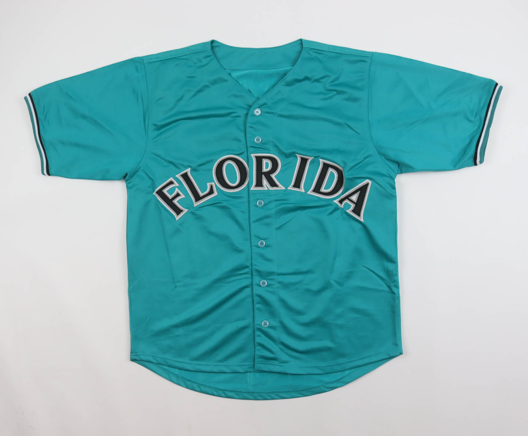 Custom jersey with everything sewn on, size XL. Hand-signed and inscribed by Livan Hernandez (Florida Marlins).