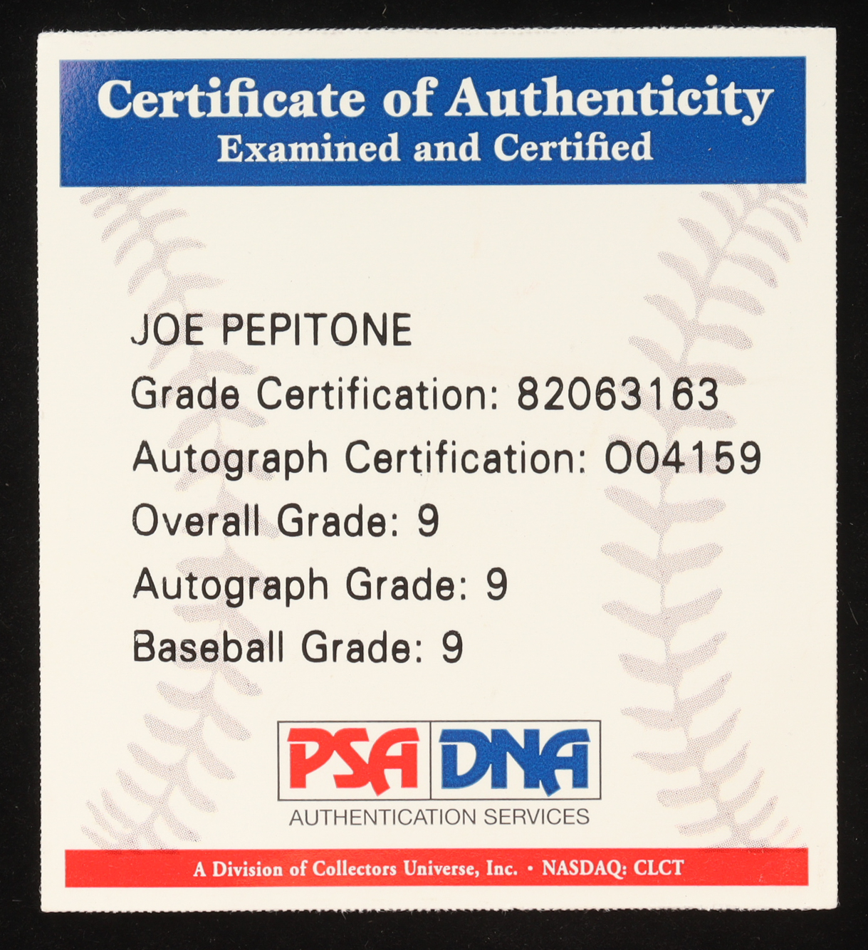 Joe Pepitone Signed OML Baseball (PSA 9)