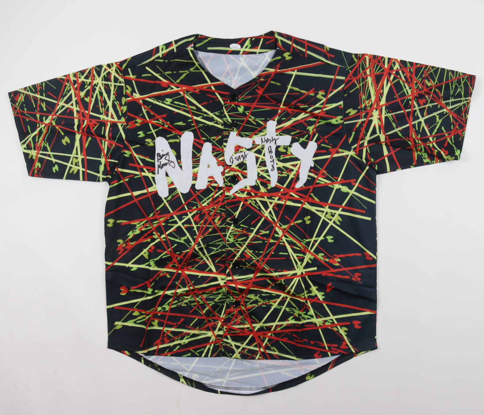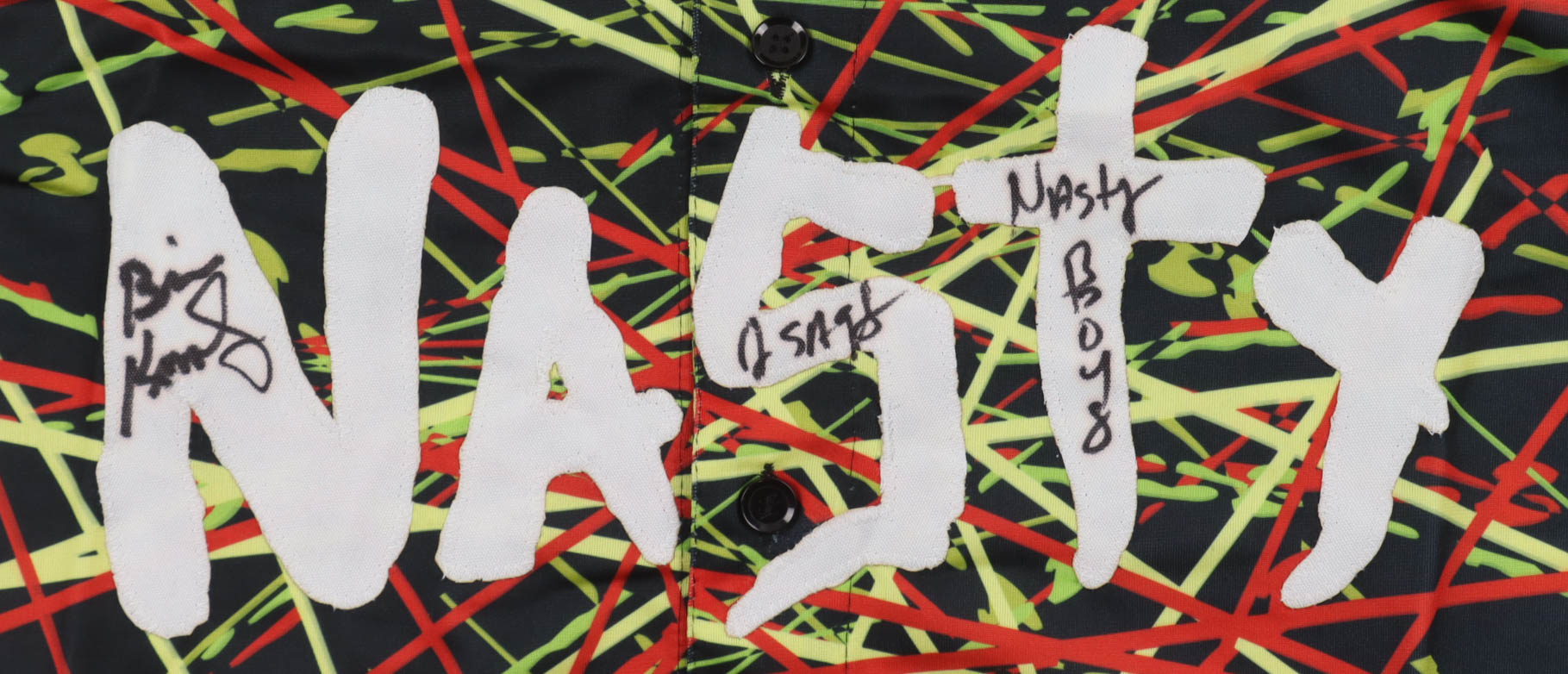 Custom jersey. Everything is sewn on, size XL. Hand-signed and inscribed by Brian Knobbs and Jerry Sags (The Nasty Boys).