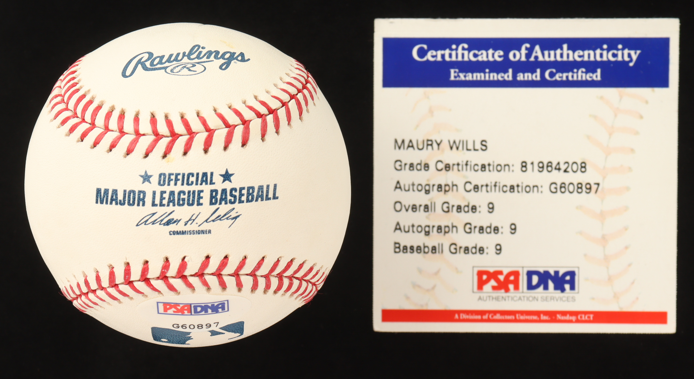Rawlings Official Major League baseball has been hand-signed by Maury Wills (Los Angeles Dodgers). Please note - the encapsulation's seal has been broken.