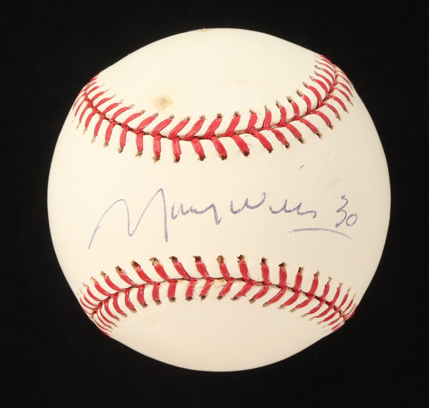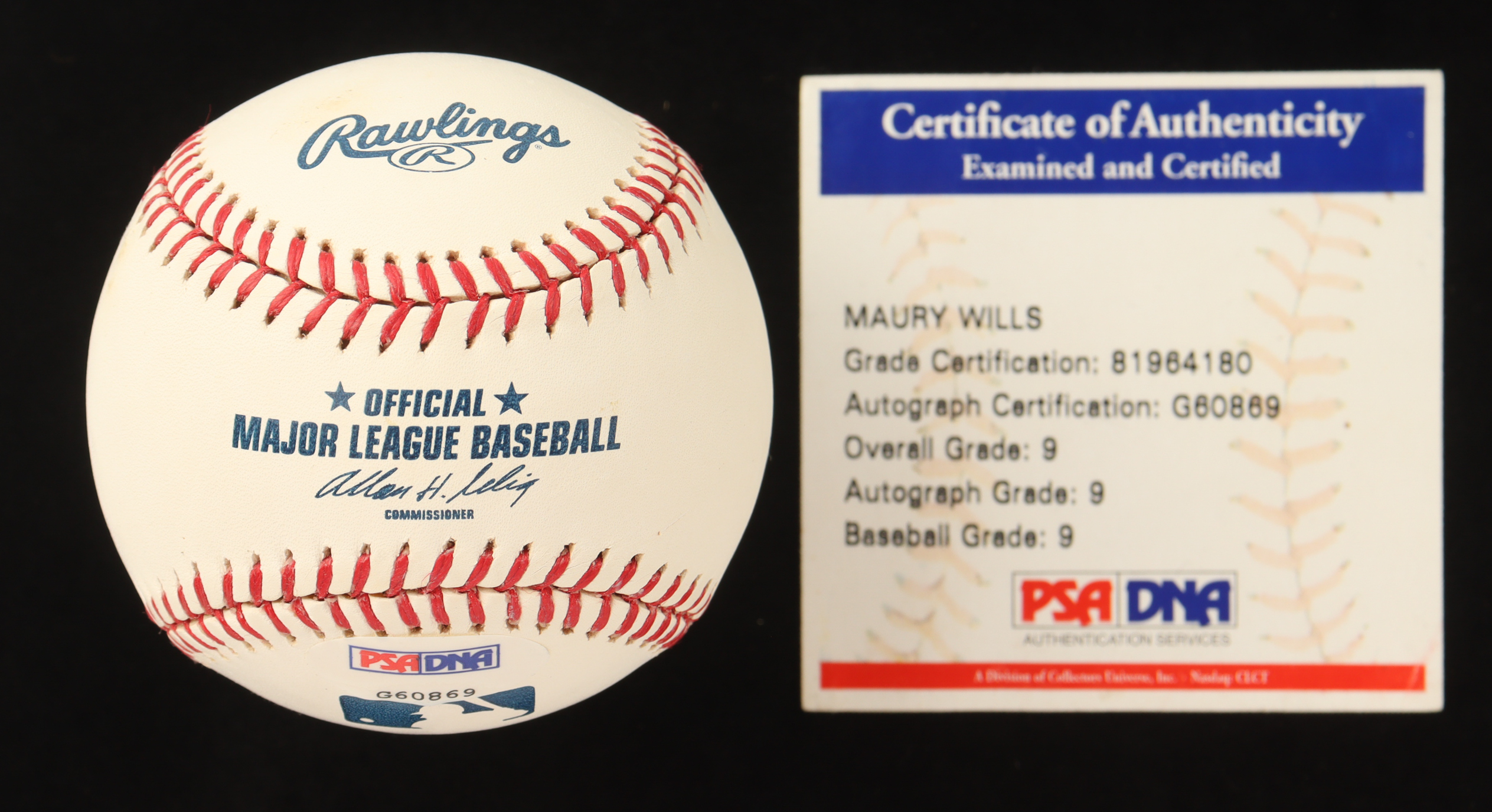 Rawlings Official Major League baseball has been hand-signed by Maury Wills (Los Angeles Dodgers).