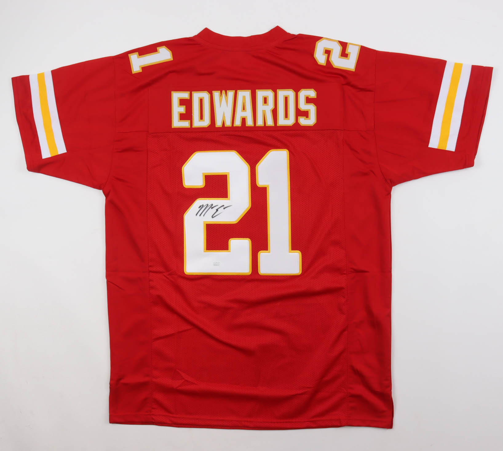 Custom jersey with everything sewn on, size XL. Hand-signed by Mike Edwards.